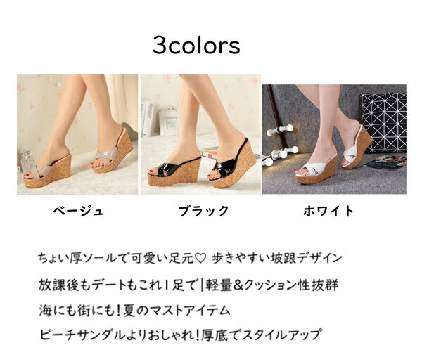ウェッジソール サンダル レディース 厚底サンダル ウェッジ ミュール ウェッジソール ミュール ストーム 厚底 女性 美脚サンダル おしゃれ カジュアル 通勤 シンプル 夏 サマー ブラック ホワイト ベージュ 【代引不可】グローリーパーク