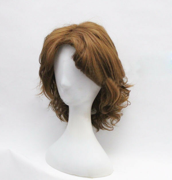フルウィッグ ミディアムウルフ 男性用かつら ライトブラウン メンズ コスプレウィッグ 専用ネット付き ウィッグスタンド付き パーティー イベント 新劇演出 現代劇演出 【代引不可】グローリーパーク