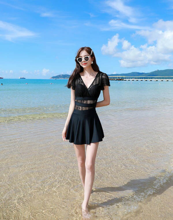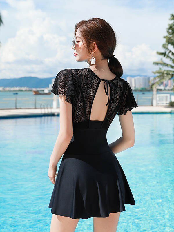 ワンピース水着 ぽっちゃり 水着 レディース 大きいサイズ 韓国 フレアスリーブ レース 透け感 ガール 可愛い 袖付き 痩せ見え 体型カバー 花柄 温泉 ビーチ プール 海 水泳 セクシー オトナ女子 かわいい 黒 ブラックグローリーパーク
