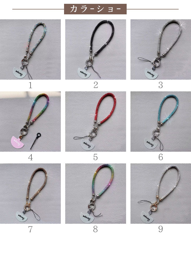 商品詳細 ●キラキラと輝き、手元を華やかに彩るスマホストラップ。 ●付属の薄型プレートをスマホケースに挟むだけで、簡単に取り付け可能。 ●充電ポートをふさがない設計で、装着したまま充電もOK。 ★おすすめポイント★ 《1》手首にかけるだけでスマホの落下を防止し、移動中や撮影時にも安心。 《2》両手が使えるので、荷物が多いときやちょっとしたお出かけにも便利。 《3》キラキラ感がありながらも上品な仕上がりで、大人の女性にもぴったり。 SPEC カラー:1‐9 素材 ポリエステル サイズ明細: F ご注意:※素人採寸ですので、若干の誤差がございます、ご了承ください。 中国製 made in China 知っておいて頂きたいこと ※濡れたままの放置や長時間の浸漬はしないで下さい。※汗や雨で湿った状態では特に、注意が必要です。淡い色の衣類?バッグ等を一緒に使用される際にもご注意下さい。※平らな面に置いて測定しておりますので、実際に着用されるとサイズが異なる場合がございますが、予めご了承下さい。※画面上の色はブラウザや設定により、実物とは異なる場合があります。ご了承の上ご注文下さい。 送料について ネコポス→全国一律送料無料 ■宅配便で3980円以上のお買い上げで送料無料 ※離島・一部地域は追加送料がかかる場合があります。 ※北海道追加送料:400円 九州地方追加送料:300円 沖縄県追加送料:700円■キラキラと輝き、手元を華やかに彩るスマホストラップ。 ●付属の薄型プレートをスマホケースに挟むだけで、簡単に取り付け可能。 ●充電ポートをふさがない設計で、装着したまま充電もOK。 ★おすすめポイント★ 《1》手首にかけるだけでスマホの落下を防止し、移動中や撮影時にも安心。 《2》両手が使えるので、荷物が多いときやちょっとしたお出かけにも便利。 《3》キラキラ感がありながらも上品な仕上がりで、大人の女性にもぴったり。
