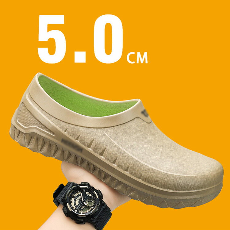 雨の日が楽しくなる大人のシューズ,憂鬱な雨の日こそ、お気に入りアイテムで気分を上げて。お洒落なだけじゃなく、機能性抜群だからどんな日でも寄り添ってくれる。水と油に強くすべりにくい。屈曲性があり、フィット感よく動きやすい。耐摩耗性があるので靴底が減りにくく、スニーカーのような履き心地です。 サイズ 39(内寸25cm) 40(内寸25.7cm) 41(内寸26.3cm) 42(内寸27cm) 43(内寸27.7cm) 44(内寸28.3cm) サイズについての説明 39(内寸25cm) 40(内寸25.7cm) 41(内寸26.3cm) 42(内寸27cm) 43(内寸27.7cm) 44(内寸28.3cm)※測定方法によって誤差が生じますので、予めご了承下さい。 素材 EVA 色 ブラック ダークベージュ 備考 ●サイズ詳細等の測り方はスタッフ間で統一、徹底はしておりますが、実寸は商品によって若干の誤差(1cm~3cm )がある場合がございますので、予めご了承ください。 ●製造ロットにより、細部形状の違いや、同色でも色味に多少の誤差が生じます。 ●パッケージは改良のため予告なく仕様を変更する場合があります。 ▼商品の色は、撮影時の光や、お客様のモニターの色具合などにより、実際の商品と異なる場合がございます。あらかじめ、ご了承ください。 ▼生地の特性上、やや匂いが強く感じられるものもございます。数日のご使用や陰干しなどで気になる匂いはほとんど感じられなくなります。 ▼同じ商品でも生産時期により形やサイズ、カラーに多少の誤差が生じる場合もございます。 ▼他店舗でも在庫を共有して販売をしている為、受注後欠品となる場合もございます。予め、ご了承お願い申し上げます。 ▼出荷前に全て検品を行っておりますが、万が一商品に不具合があった場合は、お問い合わせフォームまたはメールよりご連絡頂けます様お願い申し上げます。速やかに対応致しますのでご安心ください。