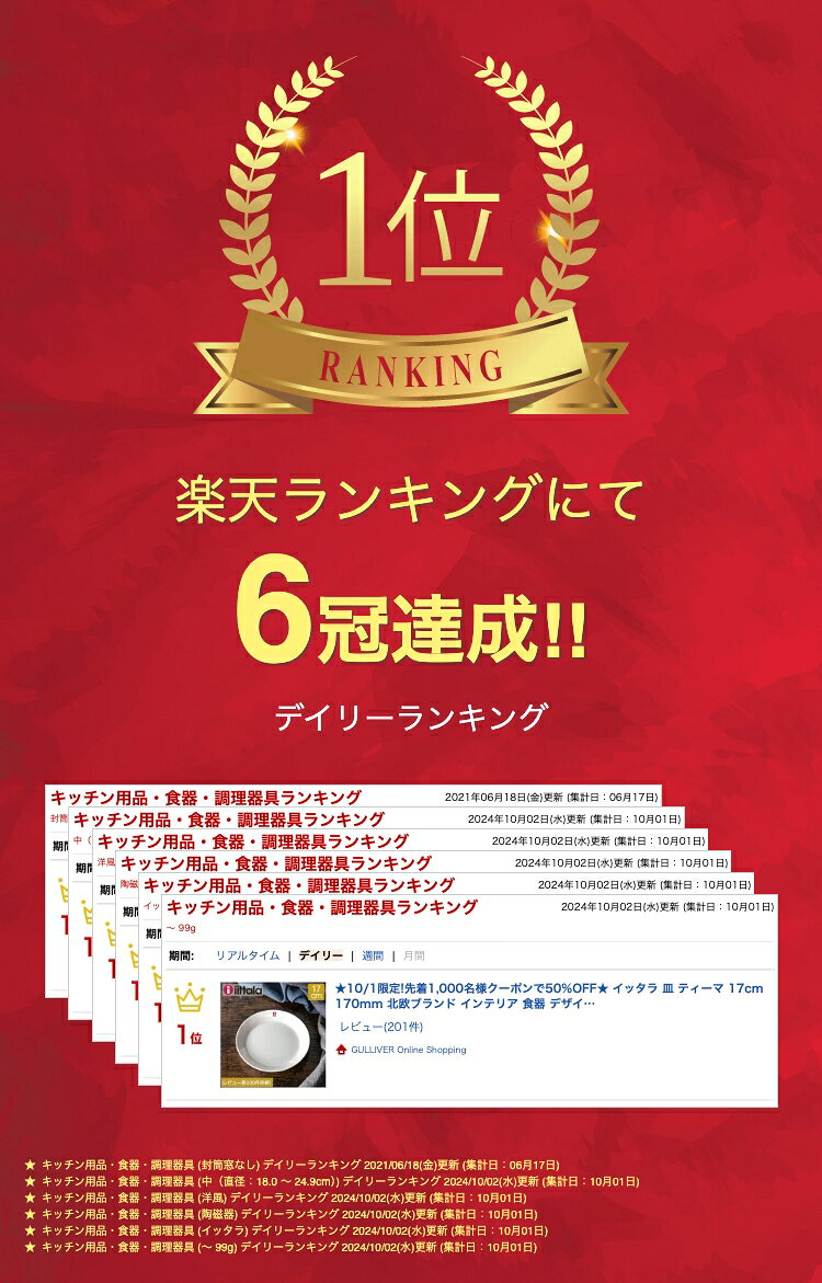 関連商品\店内、BFセール開催中/ イッタラ 皿 ティーマ 23cm 230m...\店内、BFセール開催中/ イッタラ 皿 ティーマ 26cm 北欧ブラ...1,999円11,299円\店内、BFセール開催中/ イッタラ 皿 ティーマ 26cm 260m...\店内、BFセール開催中/ イッタラ 皿 ティーマ 16×16cm 1...1,999円2,299円\店内、BFセール開催中/ イッタラ Iittala ティーマ Tee...\店内、BFセール開催中/ 在庫限り イッタラ 皿 ティーマ 24cm...1,299円6,999円\店内、BFセール開催中/ イッタラ ティーマ 皿 Iittala T...\店内、BFセール開催中/ イッタラ 皿 ティーマ 21cm 北欧ブラ...1,299円6,999円\店内、BFセール開催中/ イッタラ Iittala ティーマ Tee...\店内、BFセール開催中/ イッタラ iittala ティーマ プラタ...1,599円5,699円●カラー:ホワイト●素材:陶器●種類:プレート17cm●サイズ:トップ幅 17.5cm、ボトム幅 13.5cm、高さ 2.6cm●重量:300g【特徴】*パンやケーキなどデザート用におすすめのサイズです。*オーブン・フリーザー・電子レンジ・食器洗浄機に対応します。■取扱いについて■※ご使用の際にはすべてのラベルを取り、必ず洗って下さい。※直火は不可です。※陶器製品なので、表面に小さな凹みなどがみられる場合があります。※テーブルなどの上に置いた際に、商品によっては多少がたつく場合があります。※サイズ表記は、実寸となります。すべて手作業にて採寸を行っております為、若干の誤差が生じる場合があります。予めご了承下さいませ。●Color model numberホワイト(1005919)※海外正規品を直輸入している並行輸入品です。※画像や説明に記載のカラーやサイズが選択欄にない場合、そちらの商品は現在取り扱っておりません。※ご購入に関するご案内