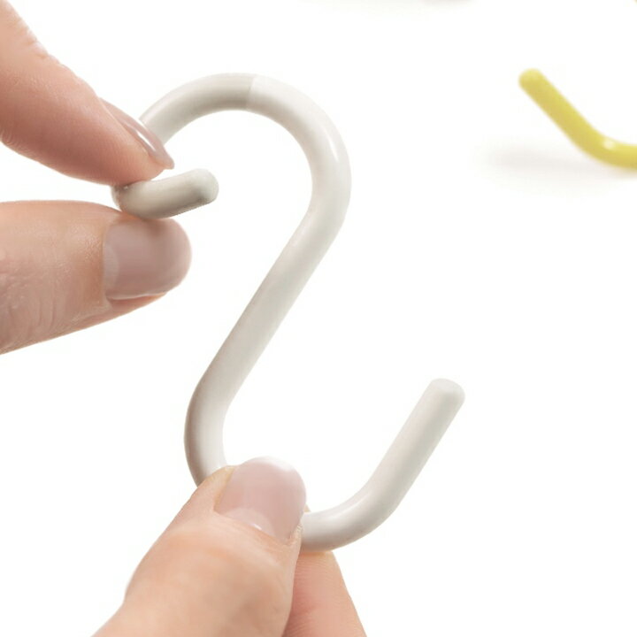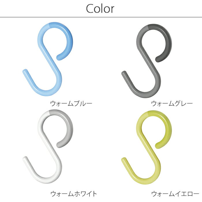 商品SPEC 【商品名】 S Hook S字フック 【ブランド名】 tidy 【本体サイズ】約幅3.8cm×奥行0.5cm×高さ6.5cm 【重さ】 約4g/約13g(パッケージ含む3個入り) 【耐荷重】800g 【材質】 TPE 【パッケージサイズ】約幅9cm×奥行0.6cm×高さ15.1cm 【原産国】 日本 【ラッピング】 不可 同色3個入り。 【メール便対応可能商品】 メール便の詳細につきましては、こちらをご確認下さい。 ご購入前に必ずご確認ください。 【製品について】 ・予告なくデザインが変更となる場合がございます。 【お取り扱いについて】 ・火のそばや高温になる場所では使用しないでください。 ・直射日光の当たる場所には使用しないでください。 ・塩素系(アルカリ性)漂白剤のご使用は避けてください。 ・貴重品や壊れやすいものは掛けないでください。 ・落下しても破損しないものを掛けてください。 ・無理に曲げないでください。破損の原因になります。 【商品画像について】 ・できる限り現品を再現するよう心がけておりますが、商品の個体差や、実物との色や表情の差異が生じる場合がございます。 【配送方法について】 ・本商品は、【メール便対応可能商品】です。ご注文の際にご希望の配送方法をご選択ください。 メール便(メール便)の詳細につきましては、こちらをご確認下さい。メール便をご希望の場合、20個まで同梱可能です。 【納期・在庫について】 ・ご注文(ご入金)をいただいてから在庫確認を行い、在庫確保の上発送手配致します。当店より、お届け日をご連絡差し上げた段階で、正式にご注文が確定致します。 ・納期は、1〜2営業日以内にメールにて、お知らせします。 ・稀に長期欠品などで、数か月お時間をいただく場合もございます。その際は、メールにてご連絡を差し上げますのでご確認下さい。また、お急ぎの場合は、ご注文前に在庫状況をお問い合わせ下さい。 ・在庫状況は、常に変動がございますので、お問い合わせいただいた時点で在庫がありましても、その間のお取り置きを承る事が難しく、ご注文のお手続き後、欠品となる場合もございます。 【ご注文、お届けに関しまして】 ・本品は破損が少ないことから、環境への影響とコスト削減のため、簡易梱包に努めております。 ・万一、破損・汚損の際は、必ず到着より一週間以内にご連絡下さい。在庫状況により交換品をすぐにご用意出来ない場合もございます。イベントページはこちら バーから外れにくいから プチイライラとさようなら。 tidy SHook S字フック 3個入り エスフックは、先端がフレキシブルに曲がり、 モノを掛けたり取ったりする時にも、 バーから外れにくい、S字フックです。 バスルームの掃除道具や小物の収納に活躍します。 ステンレスのS字フックは、 バーとこすれて嫌な音がしたり、 モノを取ろうとすると、すぐに落ちたり…。 ちょっとした、ストレスになっていませんか? このS Hookなら、外れにくいから、 ストレスを感じることもなくなります。 カラーは全部で4色 商品ページはこちらから 先をくにゃっとまげてバーに掛けるだけ。 モノを取り出しても外れにくい!! 直径2.2cmまでのバーに取り付けられます。 TPE素材は、プラスチックとゴムのいいとこどりをした素材で、 寒さや熱さ、過酷な環境にも結構強い素材です。 お風呂場でも、もちろんご使用いただけます。 ただ、直射日光には当てないようご注意ください。