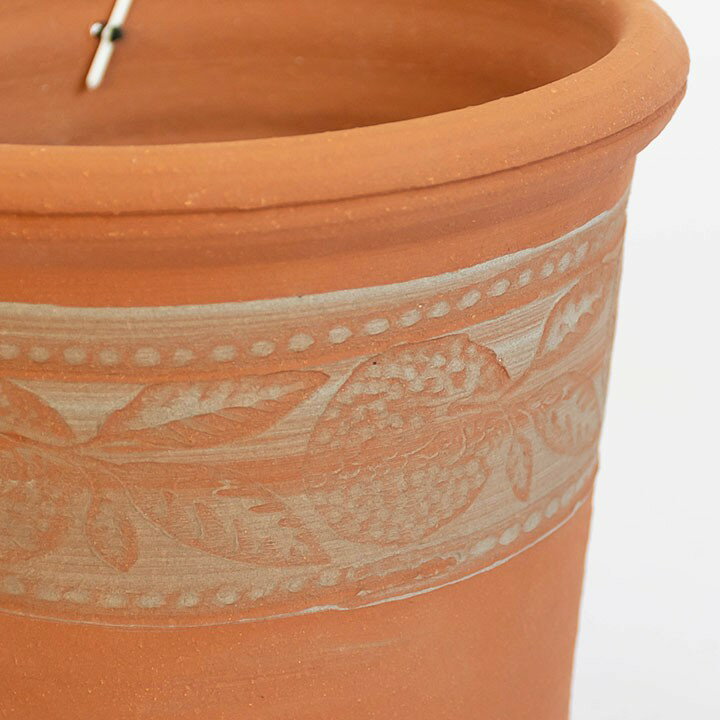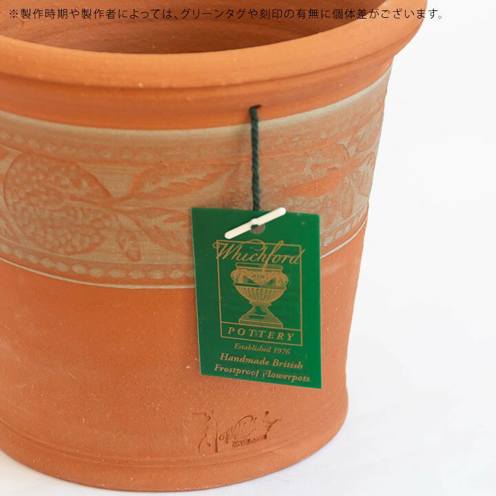 商品SPEC ◆クレメンタイン ポット 直径20cmサイズ 【カタログサイズ】 直径 20cm×高さ 20cm 【無作為抽出の実測サイズ】 直径 約20.5cm(17.5)×高さ 約18.7cm (17) (カッコ内は内寸です) 鉢底の直径:約15cm 底穴の直径:約2.3cm 重さ:約2.01kg ・生産国:イギリス ・ラッピング:可 ※グリーンのタグの有無は制作時期や製作者によって個体差がございます。 ご購入前に必ずご確認ください。 【製品について】 ・ハンドメイド品に付きカタログサイズと実測サイズの差異や、形状、表情などに個体差がございます。 ・ウィッチフォード社製品の特性として、以下のものは通常品としてお出ししております。 1.白っぽい、または黒っぽいなどの色ムラ。 2.焼成時に出来たと見られる、爆ぜやカケ、小さなヒビ、かすれ。 3.ルーレット文字やアッシュラインの重なりや、 濃淡の濃さや彫りの深さが違うもの。 4.使用上問題のない歪み。 5.製作時期や製作者の意向による、デザインの個体差やグリーンタグや刻印の有無があるもの。 ・その他、ウィッチフォード社製植木鉢の特性をこちらからご確認ください。 【納期・在庫について】 ・本商品は複数の販売部門で在庫を共有しております。都度、在庫調整を行っておりますが、タイミングにより在庫にずれが生じることがあります。在庫数更新が間に合わずご注文頂いた商品が欠品となる場合もございます。その際は、改めてメールにて、ご連絡を差し上げますので、お手数ですがご確認下さい。 メールにて、ご連絡を差し上げる期日までにご回答をいただけない場合は、ご注文をキャンセルさせていただきます。 ・納期情報につきまして、ご注文の混雑状況などにより、多少前後する場合がございます。 【商品画像について】 当店の商品写真は、できる限り現品を再現するよう心がけておりますが、商品の個体差や、実物との色や表情の差異が生じる場合がございます。ご了承ください。 【ご注文、お届けに関しまして】 ・運送などによる破損の無いよう検品・梱包には細心の注意を払っておりますが、万一、破損・汚損の際は、必ず到着より一週間以内にご連絡下さい。 また、万一の際、在庫状況により交換品がすぐにご用意出来ない場合がございます。交換品のお届けまでお時間を頂くことがございます。予めご了承下さい。予約販売品はこちら Whichford Pottery Clementine POT ウィッチフォード ポタリー クレメンタイン ポット直径20cmサイズ クレメンタインとは甘くて小ぶりの冬みかんのこと。 ヨーロッパではクリスマスの代表的なフルーツとして新鮮なものは葉つきで店頭に並びます。 この鉢にも、丸い可愛らしい実と三枚の葉が鉢を彩ります。 どんな植物にも使える実用的な形の万能な鉢です。 こちらのサイズは直径20cmと小ぶりなので、室内にもオススメです。 どっしりとした印象の丸い実に三枚の葉。 クレメンタインの上下をシンプルなルーレットで彩ることでリズム感が生まれます。 ウィッチフォードの刻印・製作者の刻印、 グリーンタグが付いています。 ※グリーンタグや刻印の有無に 個体差がございます。 ウィッチフォード特有の、 大きな底穴。 別売りで水受けもございます。G+サイズがオススメです。こちらから サイズ違いで並べても素敵です。大きいサイズ(直径33cmサイズ)はこちらから 商品SPEC ◆クレメンタイン ポット 直径20cmサイズ 【カタログサイズ】 直径 20cm×高さ 20cm 【無作為抽出の実測サイズ】 直径 約20.5cm(17.5)×高さ 約18.7cm (17) (カッコ内は内寸です) 鉢底の直径:約15cm 底穴の直径:約2.3cm 重さ:約2.01kg ・生産国:イギリス ・ラッピング:タグがあるものに限り、リボンをお付けします。 ※グリーンのタグの有無は制作時期や製作者によって個体差がございます。 ご購入前に必ずご確認ください。 【製品について】 ・ハンドメイド品に付きカタログサイズと実測サイズの差異や、形状、表情などに個体差がございます。 ・ウィッチフォード社製品の特性として、以下のものは通常品としてお出ししております。 1.白っぽい、または黒っぽいなどの色ムラ。 2.焼成時に出来たと見られる、爆ぜやカケ、小さなヒビ、かすれ。 3.ルーレット文字やアッシュラインの重なりや、 濃淡の濃さや彫りの深さが違うもの。 4.使用上問題のない歪み。 5.製作時期や製作者の意向による、 デザインの個体差やグリーンタグや刻印の有無があるもの。 ・その他、ウィッチフォード社製植木鉢の特性をこちらからご確認ください。 【納期・在庫について】 ・本商品は複数の販売部門で在庫を共有しております。都度、在庫調整を行っておりますが、タイミングにより在庫にずれが生じることがあります。在庫数更新が間に合わずご注文頂いた商品が欠品となる場合もございます。その際は、改めてメールにて、ご連絡を差し上げますので、お手数ですがご確認下さい。 メールにて、ご連絡を差し上げる期日までにご回答をいただけない場合は、ご注文をキャンセルさせていただきます。 ・納期