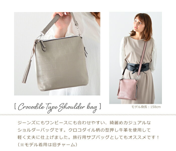 牛革 クロコ型押し レザー ショルダーバッグ PRAGMA プラグマ【斜めがけバッグ レディース 本革 小さめ 旅行 ショルダーバッグ レディース 斜めがけ 大人 軽量 通勤バッグ 軽い ポシェット 本革 bag ladies 大人バッグ クリスマスプレゼント 女性】
