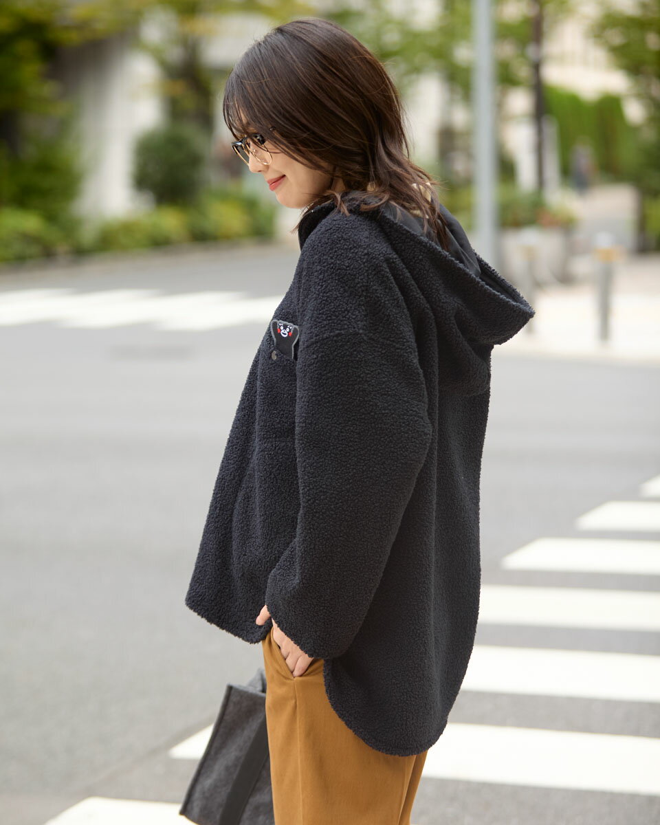 ゴールデンベアのアイテムは当店公式サイトで安心のお買い物を!ゴールデンベア商品お取り扱いNO1!「ゴールデンベアストア」です。メーカー希望小売価格はメーカー商品タグに基づいて掲載しています=Golden Bear Official Store=ゴールデンベア公式ストア Golden Bear (Ladies') くまモンのフリース 商品説明 肉感のあるボアフリースを使用したフード付きチュニックです。胸のポケットには取り外し可能なくまモンのワッペンが付いており、遊び心のあるアイテムです。ファミリー企画としておそろいの素材感で展開しています。 *本製品をお買い上げ頂きますと、 1枚につき100円が【平成28年熊本地震に伴う熊本城災害復旧支援金】に寄付されます。 熊本城が1日でも早く復興することを心よりお祈りしております。 ▽メンズはこちら ▽キッズはこちら モデル着用の際の着用感・感想について モデル身長: 166 cm 着用サイズ: M サイズ COLOR カラー展開 (左から) ブラック・ベージュ 素材 本体 (表側) ポリエステル 100% (うら側) ポリエステル 100% 別布 ポリエステル 75% 綿 25% 生産国 インドネシア製 ガイド ※商品によっては1〜2cm程度の誤差がある場合がございますので、あらかじめご了承ください。 ※ご覧になっているモニターの色の違い等により、実際の商品と色味が若干異なる場合がございます。 ▼寸法名称の説明はコチラ SIZE 実寸サイズ表(cm)※商品タグに表記されているサイズは着用目安体型となります サイズ肩幅バスト袖丈着丈M581164472L6012244.574LL621264576 HOME