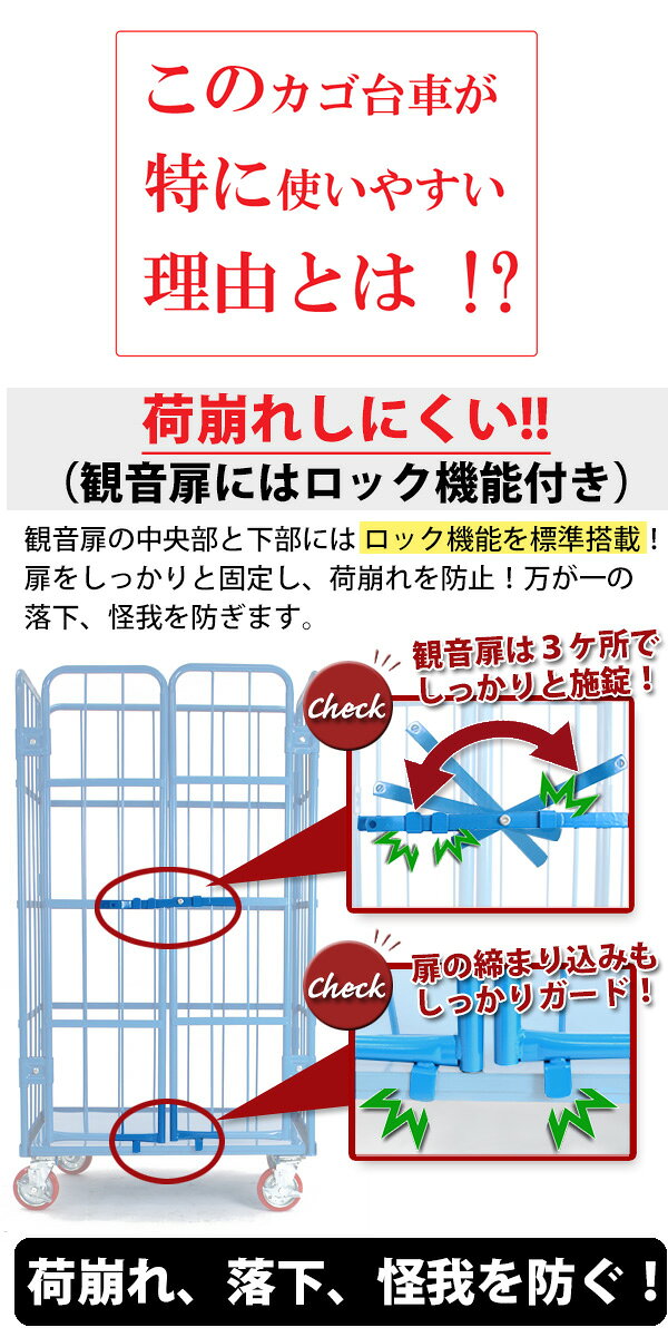 送料無料 新品 観音扉カゴ台車 カゴ車 青 W95×D80×H170(cm) 耐荷重700kg 2ドア 扉付き かご台車 ロールボックス ロールパレット パレット 看板スチールプレート 観音開き 業務用 業務用台車 大型台車 倉庫 運搬 物流 950×800×1700 キャスター ブルー cago2doorbluew