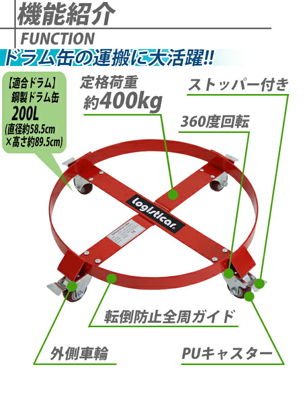 送料無料 新品 ドラム缶キャリー 定格荷重400kg 全キャスターストッパー付き スチール 赤 ドラム缶用キャリー ドラム缶ドーリー 円形台車 ドラム缶 運搬車 台車 ドラム台車 キャリー ドラムキャリー カート 丸型 運送 ドラム缶運搬車 RED レッド drumcarry55b