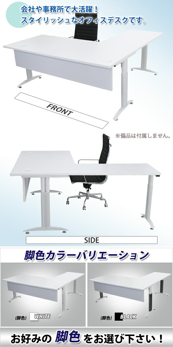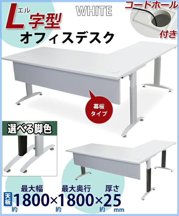 オフィスデスク デスク L字型 幕板付 コードホール付 約W180×約D180×約H75.5 約W1800×約D1800×約H755 白 平机 ワークデスク 事務机 パソコンデスク PCデスク 事務デスク L字デスク L型 コーナーデスク 会社 事務所 送料無料 ホワイト 配線穴 t016180whl041hl
