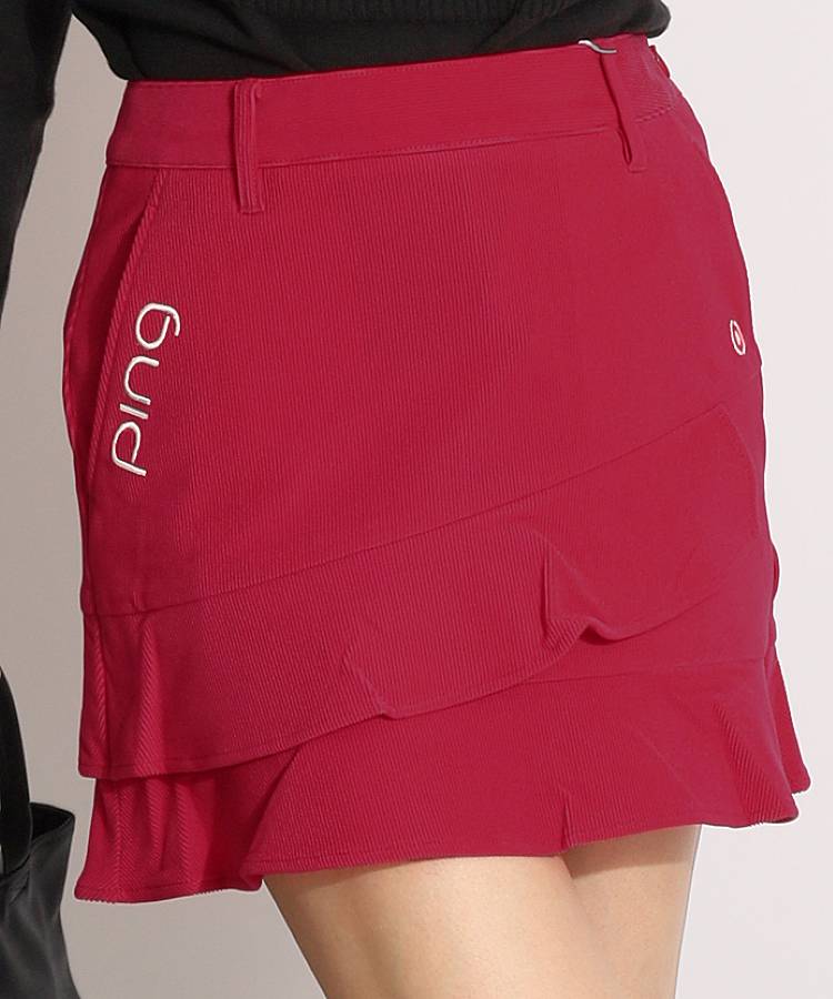【セール品】 ピン ストレッチティアードコーデュロイスカート ゴルフウェア レディース フリル コーデュロイ 刺繍 ティアード ゴルフ女子 CURUCURU