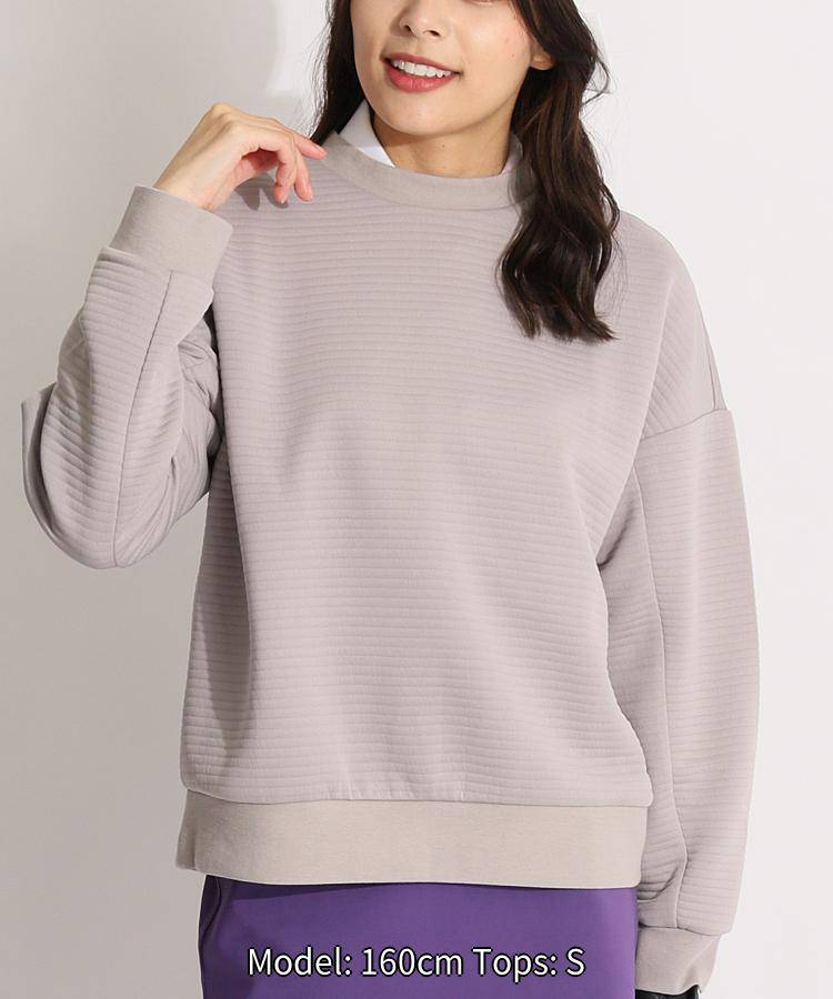 COMMENT 素材感が魅力! シンプルで着まわしやすいBASICなクルーネックのプルオーバー。ふんわりとしたキルトジャガードのボーダーステッチが入った生地は無地でも季節感を感じる風合いが可愛い♪ 同シリーズのフレアスカートを合わせてセットアップでの着こなしも可愛さ倍増でオススメの着こなしです。(上下カラーを合わせてもバラしてもOK)ドロップショルダーデザインなので、腕まわりはゆったりした作り。中にカットソーをレイヤードしてももたつきません。カラーはBASICなホワイトとグレーの他、秋冬トレンドカラーのアッシュブルーの3色展開です。ホワイトはやや透け感あり。 サイズコメント ★Sちゃん(158cm・44kg・普段XS~S) SサイズでOKです。身幅はゆとりがあるデザイン。 ★Mちゃん(158cm・49kg・普段S~M) Mでいい感じ♪ ドロップショルダーで落ち感が可愛い。 ★Lちゃん(165cm・56kg・普段M~L) LでGOOD◎ 着丈はやや短い印象ですが、ボトムとのバランスがいい感じです。 サイズ サイズ身幅着丈裄丈S54cm55cm78cmM55cm56cm79cmL56cm57cm80cm 素材 本体表地:ポリエステル100% リブ部分:コットン96% ポリウレタン4% スペック UV ブランド アンサネス 「Shine on your story」スポーツを愛する女性の為に、2021年に誕生したアクティブライフスタイルウェアブランド「ANSUNESS」。ナチュラルな時も、アクティブな時も、365日太陽のように寄り添って、あなたの物語を照らします。スタイリングに悩まないBASICさと、着心地の良さ、コストパフォーマンスの高さが魅力の注目ブランドです。 ※セール品のため返品交換できません。