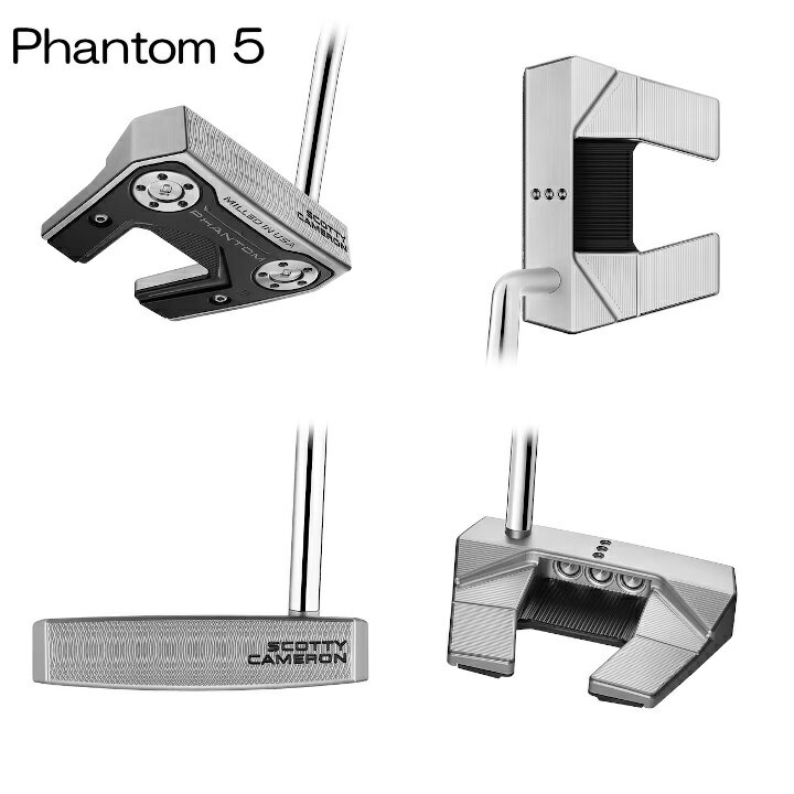 スピード感のあるルックスとツアーで証明された高いパフォーマンス! スピード感のあるルックスとツアーで証明された高いパフォーマンスを融合した、現代のゴルファーのニーズに応えるマレットパターです。 現代のゴルファーのニーズに応えるために、ツアーで証明された性能を備えたマレットパターを生み出し続けているスコッティ・キャメロン。 2024年から10種類のモデルが登場する新作「PHANTOM」は、洗練された形状、新しいアライメント機能、進化したマルチマテリアル構造、新たなグリップ、最新のカラースキーム、そしてスピード感のあるルックスが特徴の、ハイパフォーマンス マレットパターです。 ※US仕様(保証書が付属していません)スピード感のあるルックスとツアーで証明された高いパフォーマンス! スピード感のあるルックスとツアーで証明された高いパフォーマンスを融合した、現代のゴルファーのニーズに応えるマレットパターです。 現代のゴルファーのニーズに応えるために、ツアーで証明された性能を備えたマレットパターを生み出し続けているスコッティ・キャメロン。 2024年から10種類のモデルが登場する新作「PHANTOM」は、洗練された形状、新しいアライメント機能、進化したマルチマテリアル構造、新たなグリップ、最新のカラースキーム、そしてスピード感のあるルックスが特徴の、ハイパフォーマンス マレットパターです。 進化したアライメントデザイン ツアープレーヤーのフィードバックに基づき、ターゲットラインへ確実にセットアップできる独創的なアライメントデザインを採用。 「スリードット」、「デュアルライン」、「デュアルパーパス」、「アロー」のアライメントデザインをヘッドサイズに合わせて効果的に配置するだけでなく、ヘッドそのものの輪郭、段差をつけることで生み出されるライン、各部の配色(コントラスト)、ネックの向き、傾きなど、アドレス時に視認できるすべてをアライメントに繋がる要素と捉え、そのすべてがターゲットラインを指し示すようにデザインされています。 繊細なタッチを生み出すサウンドとフィール すべてのモデルで「デュアルミルド」フェーステクノロジーを採用。 ディープミルのやわらかさとミッドミルの安定したボールの転がりを両立しています。 また、剛性を高めたソールプレートとマルチマテリアル構造による重量配分によってインパクト時の振動吸収率が10%向上。 繊細な距離感とスピードを可能にするためのサウンドとフィールを備えています。 フィット感を極めたフルコンタクトグリップ 人間工学を研究して生み出された「フルコンタクト パドルスタイルグリップ」は、ツアーで人気のBaby Tを現代風にアレンジ。 楕円形デザインを強調した独自の形状により、手のひらとの密着性を高めるとともに、フロントのフラット面を際立たせることで、よりスクエアなセットアップをサポートします。 2024年モデルのPhantomは、航空宇宙分野からインスピレーションを受けた新しい形状、ラインによって意図的に導かれるアライメント、そして最適なバランスと見事な美しさを実現する米国でのミルド加工によるクラフトマンシップによって、完全に再設計されています。 Phantom 5 アライメントをさらに強化したウィングを備え、わずかにコンパクトなヘッド形状へアップデート。ツアーで好評のフェースバランスに近い設計はそのままに、ミッドベントシャフトを装着。 スリードットによるアライメントをデザインし、ブレードのようなフィーリングを実現しています。 Phantom 5.5 新しくアップデートされたPHANTOM 5と同じヘッドに、ブレードパターのようなトウフローでのストロークを好むプレーヤーに向けてジェットネックを採用しています。 Phantom 5s PHANTOM 5と同じヘッドに、ストレートシャフトを採用してオフセットゼロを実現。アドレス時にリーディングエッジをシャフトが遮ることなく、フェース全体を見ながらのストロークを可能にします。 Phantom 7 ミッドベントシャフトを装着し、鋭いウィングが特長のマレットパター。細長いウィングが慣性モーメントを高めると同時に、ボールを フレーミング するアライメント機能を果たし、スイートスポットへスムーズに導きます。 Phantom 7.5 PHANTOM 7と同じ安定した高慣性モーメントのマレットヘッドに、トウフローのストロークを促進するジェットネックを装着したモデルです。 Phantom 9 リーディングエッジからバッグフランジまで伸びるデュアルラインによって強化されたアライメントと、角ばった“リングウェイト”が特長のモデルです。より高い慣性モーメントと許容性を発揮しながら優れたフィーリングを提供します。 Phantom 9.5 PHANTOM 9と同じ高慣性モーメントと優れたフィーリングを備えたヘッドに、5.5および7.5モデルと同様のトウフローのストロークがしやすいジェットネックを装着したモデルです。 Phantom 11 独自の3ピース構造で重量バランスを最適化し、PHANTOM