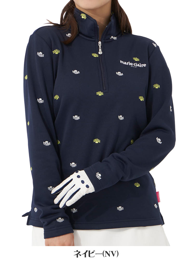 マリクレール ゴルフ レディースウェア 飛び柄刺繍 ハーフジップ ハイネック 長袖シャツ 732-509 M-LL [即納]