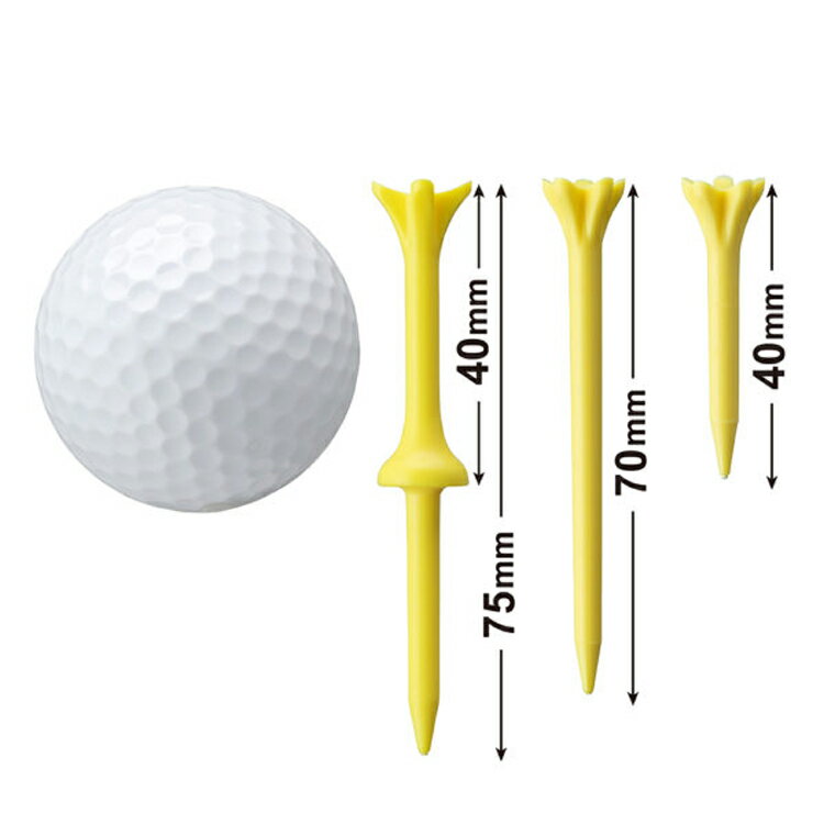 インパクトの抵抗を考慮したプロ好みの設定。どこへ行っても常に同じ高さで打てるシンプルさが魅力です。 材質:ポリプロピレン、植物性樹脂 ティー全長:約75mm、ティーアップ高:約40mm 入り数:12本 ※原材料は天然素材のトウモロコシ澱粉のバイオマス素材樹脂を使用しており、地球環境を考えたエコ素材となっております。 【メール便対応商品です】 ・1封筒に6個まで入れることができます。 ・必ずメール便を選択して下さい。 ・ご注文後の配送方法変更は出来ません。 ・必ずお買い物ガイドをご参照下さい。