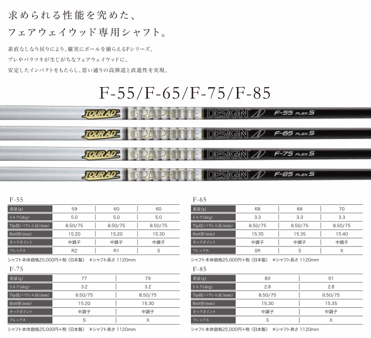 【全てメーカー純正部品使用】【キャロウェイ ウッド用 純正 スリーブ付きシャフト】 グラファイトデザイン Tour AD F FW (Graphite Design Tour AD F)