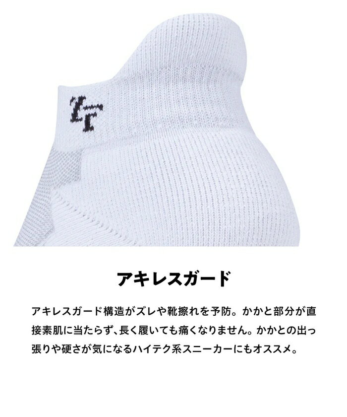 ゴルフのプレイ時における性能はツアーの舞台でも実証済みです。 スポーツはもちろん、長時間の立ち仕事、足に負担のかかる作業におすすめです。 足底に独自のエアーベンチレーション構造を設けることで、足の運動に合わせて空気の流れを生成し、ムレを軽減。さらに、天然銀イオンの最先端抗菌技術であるポリジン加工を施す事で、シューズ内環境を快適にキープします。また、土踏まずのアーチを引き上げるサポート構造がアーチ形状を持続。足の疲労感や身体のバランスの崩れにつながる土踏まず足底筋の消耗を抑制します。 【カラー】 ブラック(黒)、ホワイト(白)、グレー(灰色) 【サイズ】 S(22-24cm)、M(25-27cm)、 L(27〜29cm) ※男女兼用 【シーズン】 春、夏、秋、冬、オールシーズン 【素材】 ポリエステル、綿、ポリウレタン、ナイロン 【製造】 日本製 【メール便対応商品です】 ・1封筒に2枚まで入れることができます。 ・必ずメール便を選択して下さい。 ・ご注文後の配送方法変更は出来ません。 ・必ずお買い物ガイドをご参照下さい。