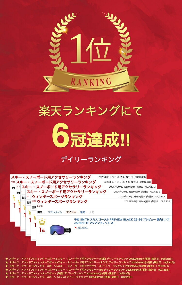 【店内全品最大6,000ポイント※要エントリー】予約 SMITH スミス ゴーグル PREVIEW BLACK 25-26 プレビュー 調光レンズ JAPAN FIT アジアンフィット スノーボード スキー 正規品