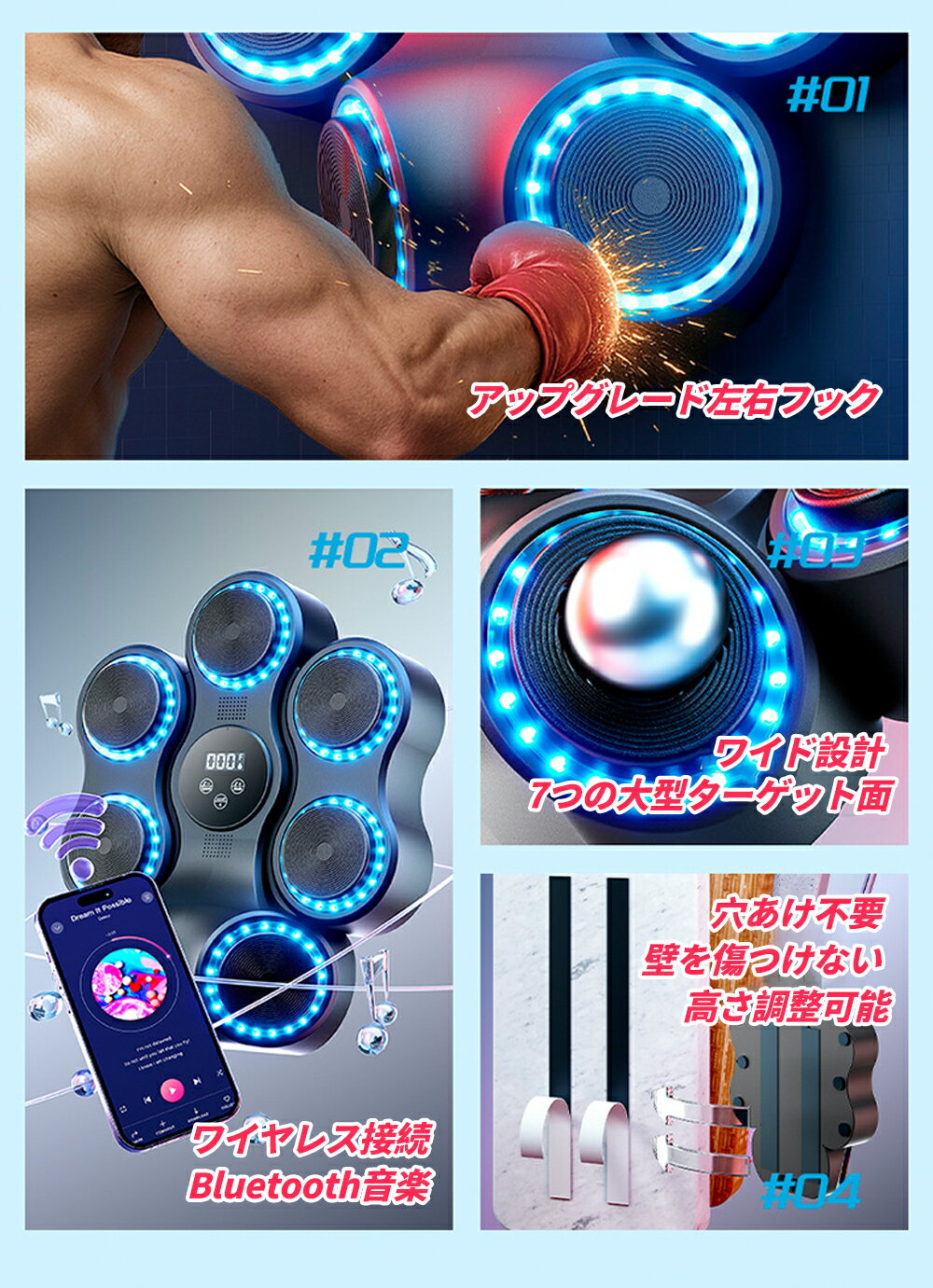 500円クーポン・11日迄★パンチング マシン 音楽再生 家庭用 ダイエット パンチングマシン ミュージック ボクシングマシン パンチングマシーン ライト Bluetooth トレーニング ストレス解消 発散 室内 練習用具 子供 男性 女性 ボクシング フィットネス エクササイズ