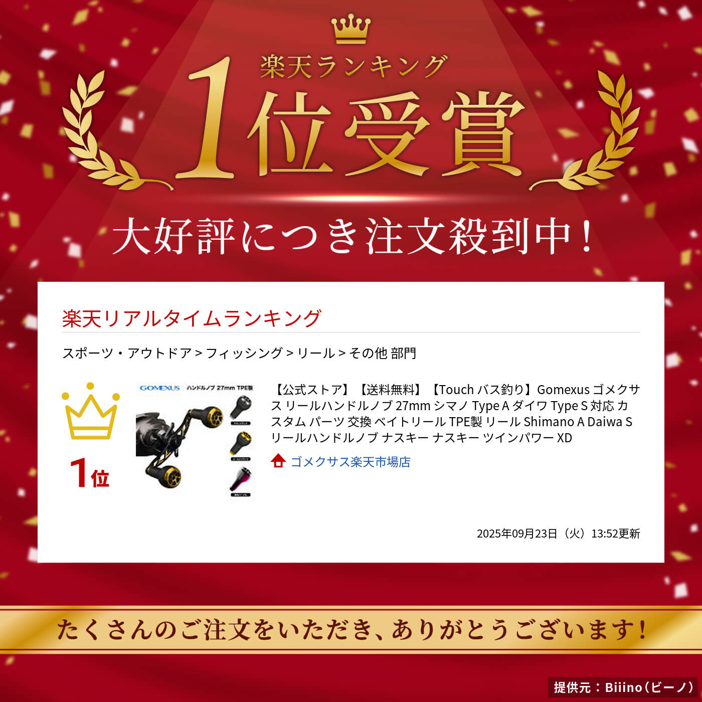 【公式ストア】【送料無料】【Touch バス釣り】Gomexus ゴメクサス リールハンドルノブ 27mm シマノ Type A ダイワ Type S 対応 カスタム パーツ 交換 ベイトリール TPE製 リール Shimano A Daiwa S リールハンドルノブ ナスキー ナスキー ツインパワー XD