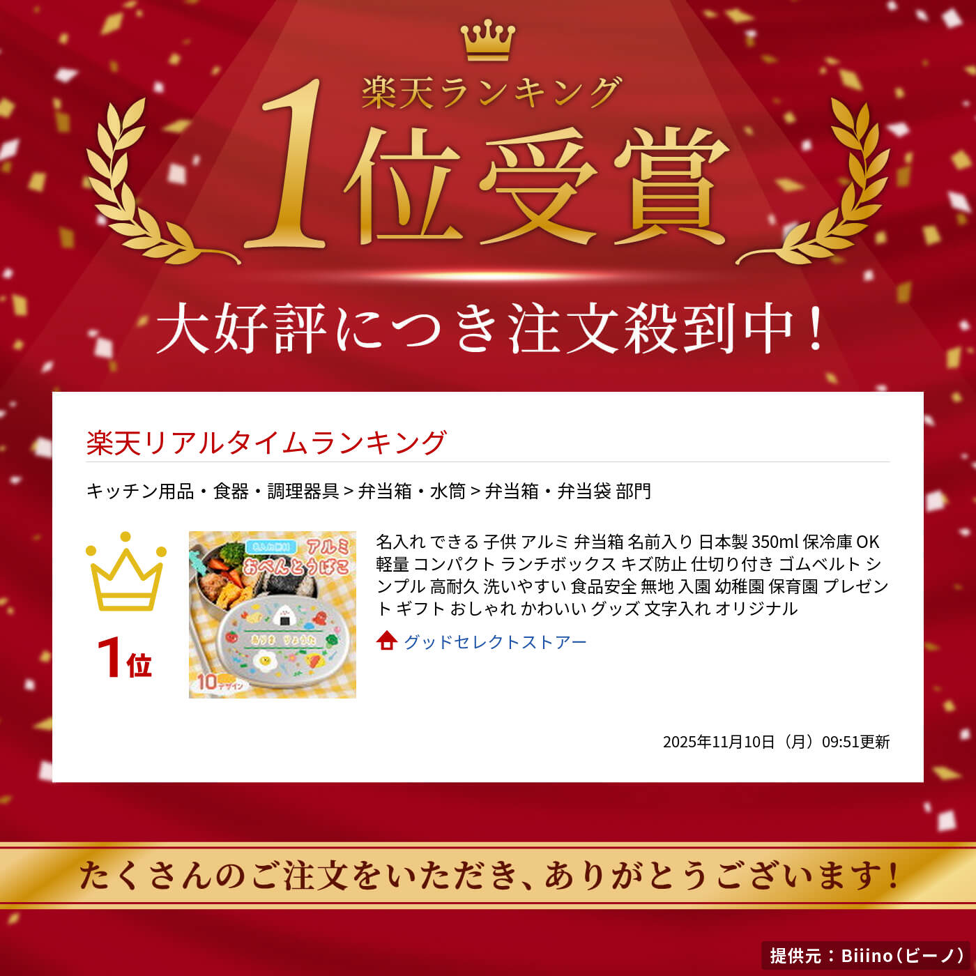 商品名 軽くて丈夫!名入れ できる アルミ弁当箱 商品説明 🔵 軽さと丈夫さを両立!お子さまにも安心のアルミ弁当箱 幼稚園や保育園のお子さまのお弁当にぴったりのコンパクトサイズ。仕切り付きなので、ご飯とおかずを分けて美しく詰められます。日本製ならではの高品質で、毎日のランチタイムをもっと楽しく。 🔵 清潔&便利!使いやすさ抜群のランチボックス キズがつきにくい特殊コーティングで、清潔さをキープできるアルミ弁当箱。ゴムベルト付きでフタをしっかり固定できるので、持ち運び時も安心です。洗いやすい設計だから、お手入れも簡単。遠足やピクニック、毎日のランチに大活躍間違いなし! 🔵 コンパクトなのにたっぷり!350mlのアルミ弁当箱 小さくても容量たっぷりの350ml設計で、見た目以上にたくさん詰められる便利な弁当箱。仕切りがあるので、ご飯とおかずを分けて美しく盛り付け可能です。持ち運びがラクな軽量設計だから、遠足やアウトドアにもおすすめ! 🔵 お手入れラクラク!忙しい毎日の味方♪ 洗いやすさを考えたシンプルなデザインで、お手入れもストレスフリー。アルミ素材は熱伝導率が高く、食材をいつでもおいしい状態に保ちます。幼稚園や学校でのランチタイム、職場でのお弁当にも最適です。 【サイズ・素材】 サイズ:98mm × 138mm × 44mm / 350ml 素材:フタ・本体・仕切り: アルミニウム合金 (厚み 0.6mm) / ベルト : レーヨン 45%,ポリエステル 35%,ゴム 20% 表面加工:フタ・本体内部 : フッ素樹脂コーティング 注意事項 【購入前にご確認ください】 ・本商品は受注生産商品となりますためお客様都合の注文後のキャンセル、返品・交換はお受け出来ません。 ・モニターの仕様などにより写真と商品の色が多少異なる場合があります。予めご了承ください。 ・商品納期情報はカート付近の【配送予定】に掲載しておりますのでそちらを事前にご確認ください。 ・直火・オーブン・グリル・電子レンジでは使用しないでください。 ・食器洗浄機・食器乾燥機は使用しないでください。 ・金属たわし・硬度ナイロンたわし、クレンザー等はアルミ表面やコーティング面を傷つけることになりますので使用しないでください。 ・漂白剤や洗浄液の付け置き洗いはしないでください。 ・酸性やアルカリ性の強い食品を入れないでください。 ・乱暴に扱うと凸凹になったりエッジ部分が鋭利になることがあり、指を切るおそれがあります。 ・持ち運びの際にはランチベルトをしてください。またナフキン等で包みますとフタと本体が固定されフタの内側が摩擦によって黒ずむことを軽減できます。 ・保温庫をご使用の際には火傷にご注意ください。 ・ご使用後はエッジ部分に注意し柔らかいスポンジと中性洗剤で洗浄ください。洗浄後は布等で水分を拭き取りよく乾燥させてください。 ・長期のご使用によりフッ素樹脂コーティング・ウレタンコーティングは剥離することがあります。ご使用中に剥離がありましても食品衛生法に適合した材料のため安全です。 ・フタ内面は摩擦で黒ずむ事がございます。中性洗剤をつけた柔らかいスポンジで擦り洗いすると、ある程度落とす事ができます。 区分 雑貨 キーワード 名入れ できる 文字入れ アルミ弁当箱 軽量 耐久性 350ml 保冷庫対応 日本製 子供用ランチボックス 幼稚園 小学校 ゴムベルト付き 清潔感 傷がつきにくい 持ち運び便利 シンプルデザイン 食材仕切り コンパクトサイズ 衛生的 お手入れ簡単 ピクニック用 デザート収納 ランチボックス 仕切り付き 持ち運び便利 保温庫対応 日本製コンパクト おしゃれデザイン 耐久性抜群 お弁当箱 スリムタイプ 衛生的 K-POP 韓国 好き 韓国 イラスト 韓国 デザイン ポップ ファッション グッズ 1個から作成可能 アクリルキーホルダー アクリル キーホルダー アクキー 可愛い かわいい 韓国 名入れ トレンド ジャケット オリジナル デコレーション デザイン ラッピング ギフトラッピング かわいい 可愛い おしゃれ オシャレ 個性的 携帯ケース プレゼント 誕生日 贈りもの 彼女 彼氏 人気 ランキング モバイル ショコラ パステル スモーキー スモーキーカラー ショコラカラー シンプル 淡い オレンジ ピンク ブルー グリーン ベージュ ブラウン ボルドー ラベンダー ブラック ブランド パール ショコラ おしゃれ 無地 レディース 女性 エレガント オンリーワン 大人 セレブ キレカワ デコ ギフト 記念日 ファッション 保護 高級 高評価 機能性 魅力的 正月 初詣 新年 仕事始め 成人の日 成人 成人式 節分 バレンタイン バレンタインデー バレンタインデイ ひな祭り ホワイトデー ホワイトデイ 卒園式 卒園 卒業式 卒業 入園式 入学式 入社式 進級 GW ゴールデンウィーク ゴールデンウィーク 端午の節句 子供の日 こどもの日 子どもの日 母の日 6月 父の日 七夕 夏休み お中元 夏ギフトサマーギフト 暑中見舞い お盆 帰省 残暑見舞い 新学期 運動会 体育祭 敬老の日 ハロウィン ハロウイン ハロウィーン 勤労感謝の日 七