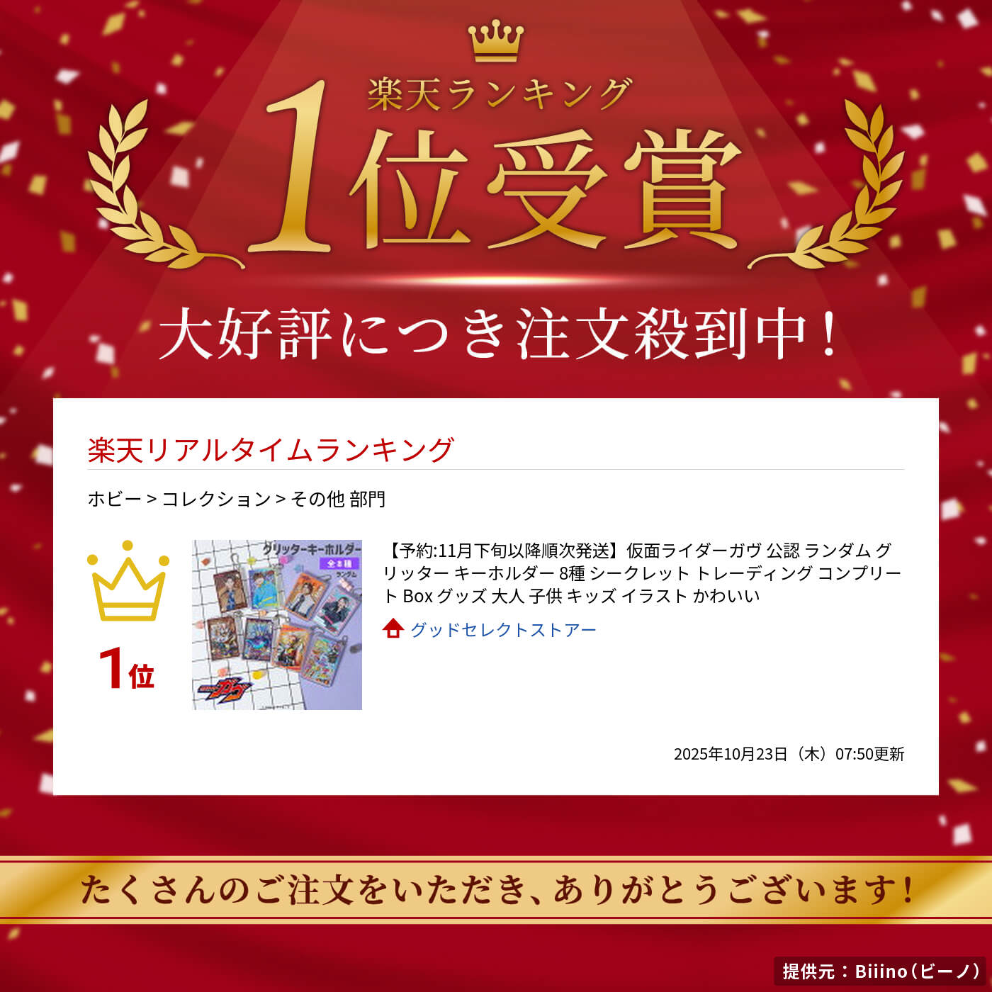 メーカー 【good select(グッドセレクト)】 商品名 ランダムグリッターキーホルダー サイズ W55×H80×D5mm 素材 ポリカーボネート 購入前にご一読ください ・モニターの仕様などにより写真と商品の色が多少異なる場合があります。予めご了承ください。 ・商品納期情報はカート付近の【配送予定】に掲載しておりますのでそちらを事前にご確認ください ・メール便の配送中での商品破損の返品・交換はできません。配送中の保障をご希望の方は宅配便での購入をお勧めします。 ・"単品 (完全ランダム)"を8点ご注文いただいた場合はランダムで8種類お送りいたします。全種類1点ずつをご希望のお客様は"BOX (全8種コンプリート)"をご購入ください。 製造国 日本 区分 雑貨 コピーライト ©2024 石森プロ・テレビ朝日・ADK EM・東映