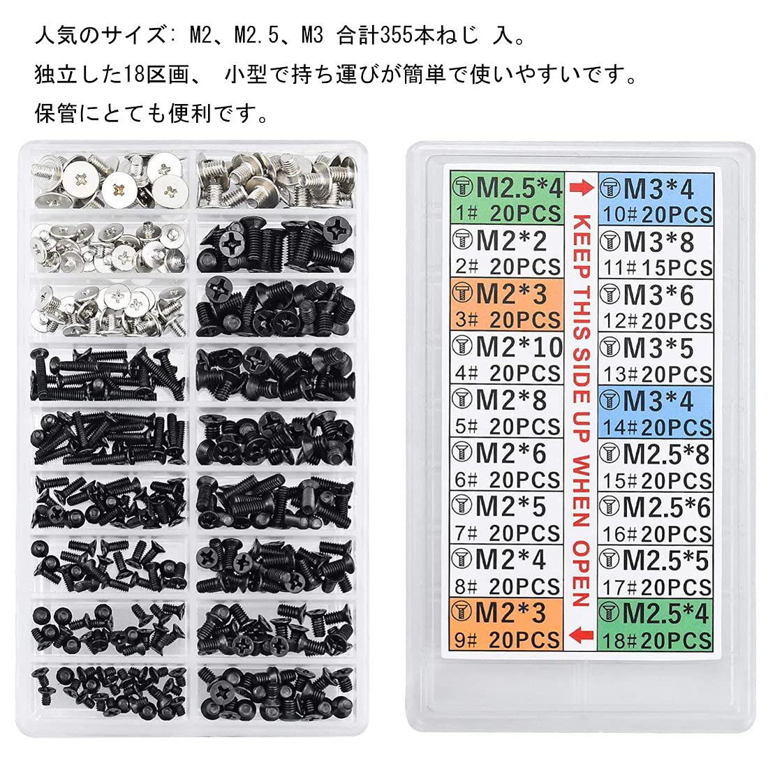 【送料無料】YFFSFDC PC ネジセット 355本入り M2 M2.5 M3 ノートPC用ネジ HDD M.2 SSD 固定用平ネジセット 交換用ノートパソコンねじ 収納ケース付き