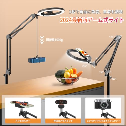 【送料無料】Evershop アーム式俯瞰撮影 照明 リングライト スマホスタンド 真上から撮影用ライト 動画撮影 メイク用ライト 配信用ライト パソコン ledライト カメラ pc zoom Youtobe TikTok 手元 物撮り オンライン面接 ウェブ会議 化粧
