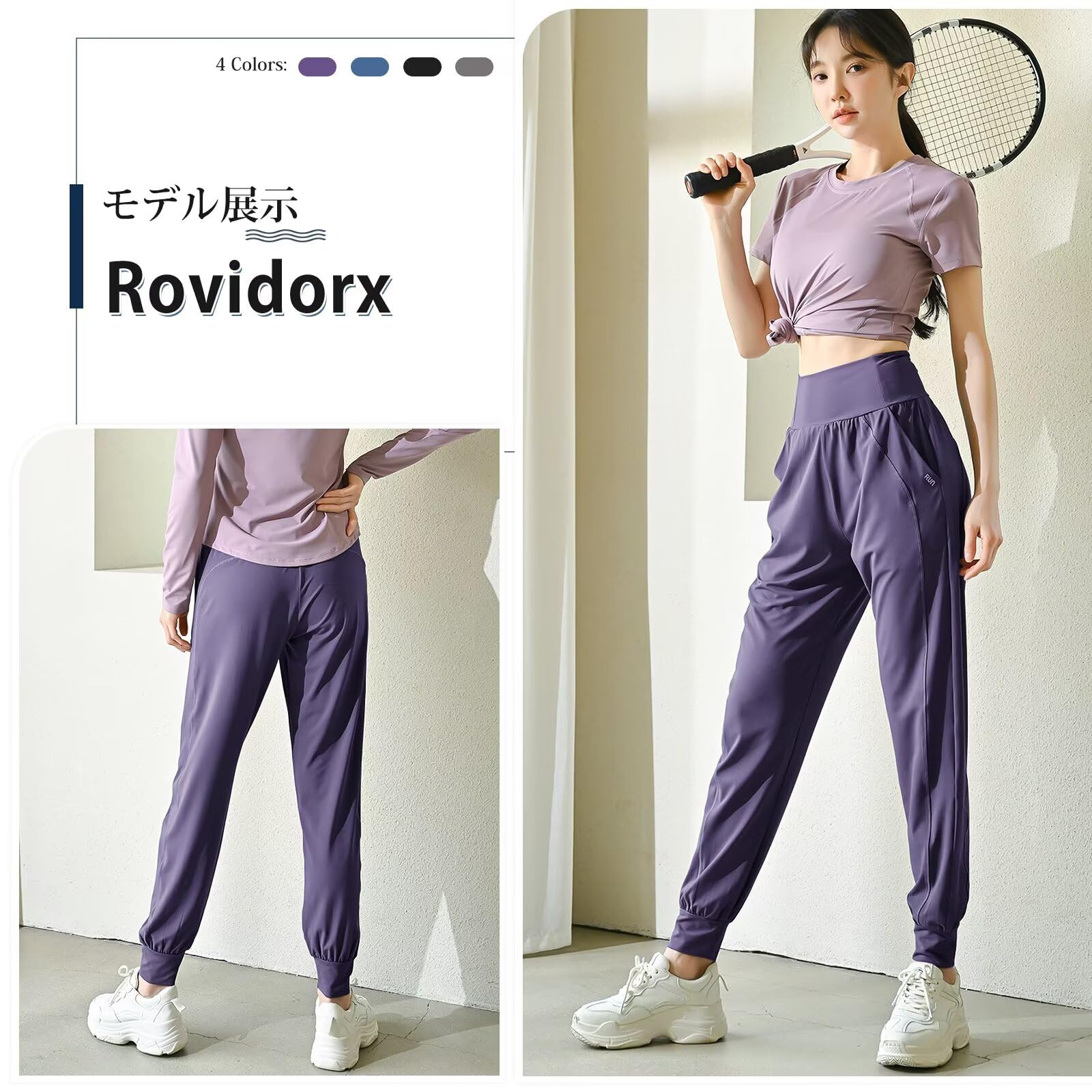【送料無料】[Rovidorx] ヨガパンツ ジャージ レディース 下 ジョガーパンツ ランニングパンツ ゆったり ダンスパンツ ヨガウェア スポーツウェア トレーニングウェア ピラティス 美脚 速乾 色:パープル、サイズ:M