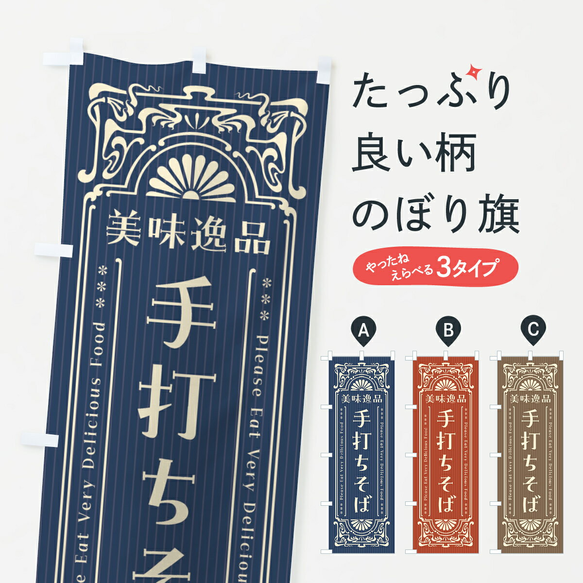 一枚一枚、職人の目で仕上げる美しいのぼり自社設備で丁寧に印刷・仕上げ。生地の目を生かした高精細プリントで、色の深みと艶やかさにこだわりました。たった1枚で店頭の空気が変わる風にはためくたび、色が“動く”。視線を集め、用件を伝え、写真にも残る。のぼり旗は手軽で扱いやすく、多くのお店で活用されています。並べるだけで統一感カラーを交互に、もしくは同色で揃えるだけでお店のトーンが整います。季節・業種ごとの入れ替えも簡単。 店舗外観の印象がガラリと変わります交互に並べて華やか、統一感UP風にはためくたびに目を引く、高発色プリント。店頭の印象づくりに最適で、入店率アップが期待できます。使う場所に“ぴったり”合わせるチチ位置・サイズ変更に対応。のぼり/横幕のセット展開もOK。店前・イベント会場・屋内外、用途に合わせて最適化します。名入れ・ロゴ入れ店舗名やロゴを入れて“自分だけののぼり”に。認知向上や予約促進に役立ちます。デザイン依頼経験豊富なデザイナーが、目的に沿って最適なデザインをご提案。メモや手描き原稿からでもOK。入稿形式いろいろ入稿のぼりは Illustrator / Photoshop / Affinity / Canva に対応。テンプレートを入手多彩なオプションチチ位置・棒袋縫い・補強縫製・フリルなど、仕様を自由に選べます。仕様・加工の詳細約88%が「また利用したい」発色のきれいさ・使いやすさで高評価。アンケートでは88.1%のお客様が再利用意向と回答。※ 当社継続アンケート(Googleフォーム/回答59件)の結果です。環境配慮のインクを採用スイスのエコテックス®『ECO PASSPORT』認証インクを使用。安心と品質、そして持続可能性を両立しています。似ている他のデザインスペック印刷フルカラーダイレクト印刷重量約80g素材のぼり生地:ポンジ(テトロンポンジ)[おすすめ]丈夫で高級感のあるトロピカル生地に変更可能(裏抜け減)チチポールを通す輪。チチの色変更も可能対応ポール例:最大全長3m、直径2.2cm/2.5cmポール・注水台は別売り:スタートセット包装個別包装(PE袋)/包装時:約20×25cm横幕に変更決済時の備考欄に「横幕の画像確認希望」とご記入ください縫製四辺ヒートカット仕上げ。四辺補強縫製・棒袋縫いに対応 防炎加工+2営業日。防炎加工・商標保護されているデザインは、権利者の許可がある場合のみ使用できます。・誤解を招く表記(例:AED非設置なのに表示など)は使用できません。・屋外向け薄手生地。寿命目安:約3?6ヶ月(使用環境により変動)。・荒天時は屋内退避で長持ち。濡れたまま放置は色ムラ・色移りの原因。・約3ヶ月ごとのデザイン更新がおすすめ。・洗濯・アイロンは可能ですが、色落ち等にご注意ください(自己責任)。場所に合わせてサイズを選べますサイズの選び方お届けの目安
