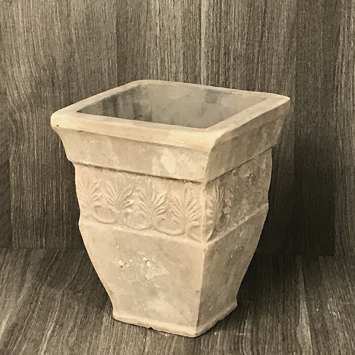 直径20cm 高さ26cm 口径16cm 底直径11cm 内高さ24cm 内底直径9cm (直径・口径は四角の1辺の長さです) 底面の対角線の長さ16cm(丸い受皿を選ぶ際に参照) 容量 : 約 4.5リットル 重さ : 約 4kg 色 : グレーとブラウンの中間色・ショコラ・モカ アンティークの風合いを出す為、砂が吹きかけてあり その砂が取れることがありますが、これが通常の状態です 風合いに個体差がありますのでご理解ください 底穴 : 有 どのような植物でも合わせやすく 表面のラフな作りが上品で高級感を醸し出しています 表面の風合いは使い込むほどに味わいを増します 植物と共に鉢の表情の変化もお楽しみください アンティーク素焼き鉢(テラコッタ)の使用写真 小さいサイズ 大きいサイズ ご購入前に、『植木鉢の特性』をご確認ください。 全部で■鉢欲しいのに、在庫が無いようですが? こちらの商品は、実在庫よりも少なめに在庫表示している場合や、 すぐにお取り寄せ可能な場合もありますので、 「商品についてお問い合わせ」ボタンから、ご希望数をお知らせください。 【殺虫剤】オルトランDX粒剤 200g きれいな鉢底石 2L 鉢底ネット付 特選有機培養土 5L プロミック いろいろな植物用 150g グーポットでは… 植木鉢・鉢カバー専門店 グーポットでは、花や観葉植物をはじめ、オリーブやブルーベリーなどの果樹、バラやコニファーなどの花木、ハーブ・野菜や造花などに使用する植木鉢・鉢カバーを中心にガーデニング・園芸用品を幅広く取扱っています。植木鉢の種類は、テラコッタ・陶器・プラスチック・グラスファイバーなど素材も様々で、鉢皿からプランターなど大型の鉢まで取り揃えています。ご家庭のリビング・玄関・ベランダ・バルコニー・テラスに、会社や店舗では、エントランス・事務所などインドア・アウトドアの色々な場面で、おしゃれな空間を演出します。新築祝い・開店祝い・誕生日・母の日・父の日などのギフトにもいかがでしょう。