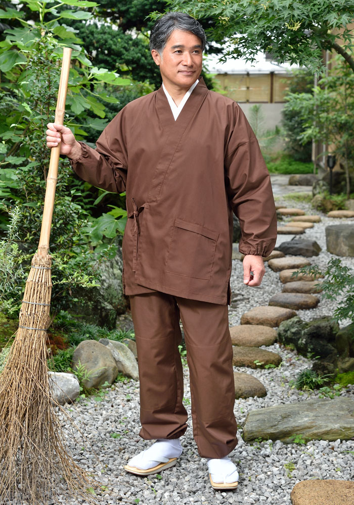 寺用 作務衣 さむえ さむい 作務服 メンズ 男性用 紳士 住職 寺院 寺用 レディース 大きいサイズ 日本製 春夏秋冬 通年 洗える S M L LLサイズ [丈夫な寺用改良作務衣 茶 濃紺 黒 (S-LL)] 敬老の日 父の日 ギフト 送料無料