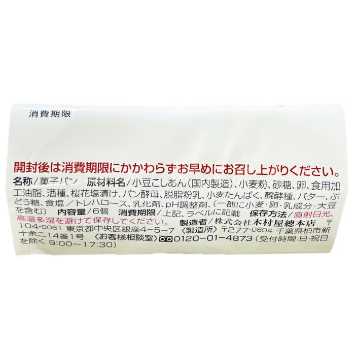 【コストコ】木村屋總本店 あんぱん 6個入り 冷蔵便