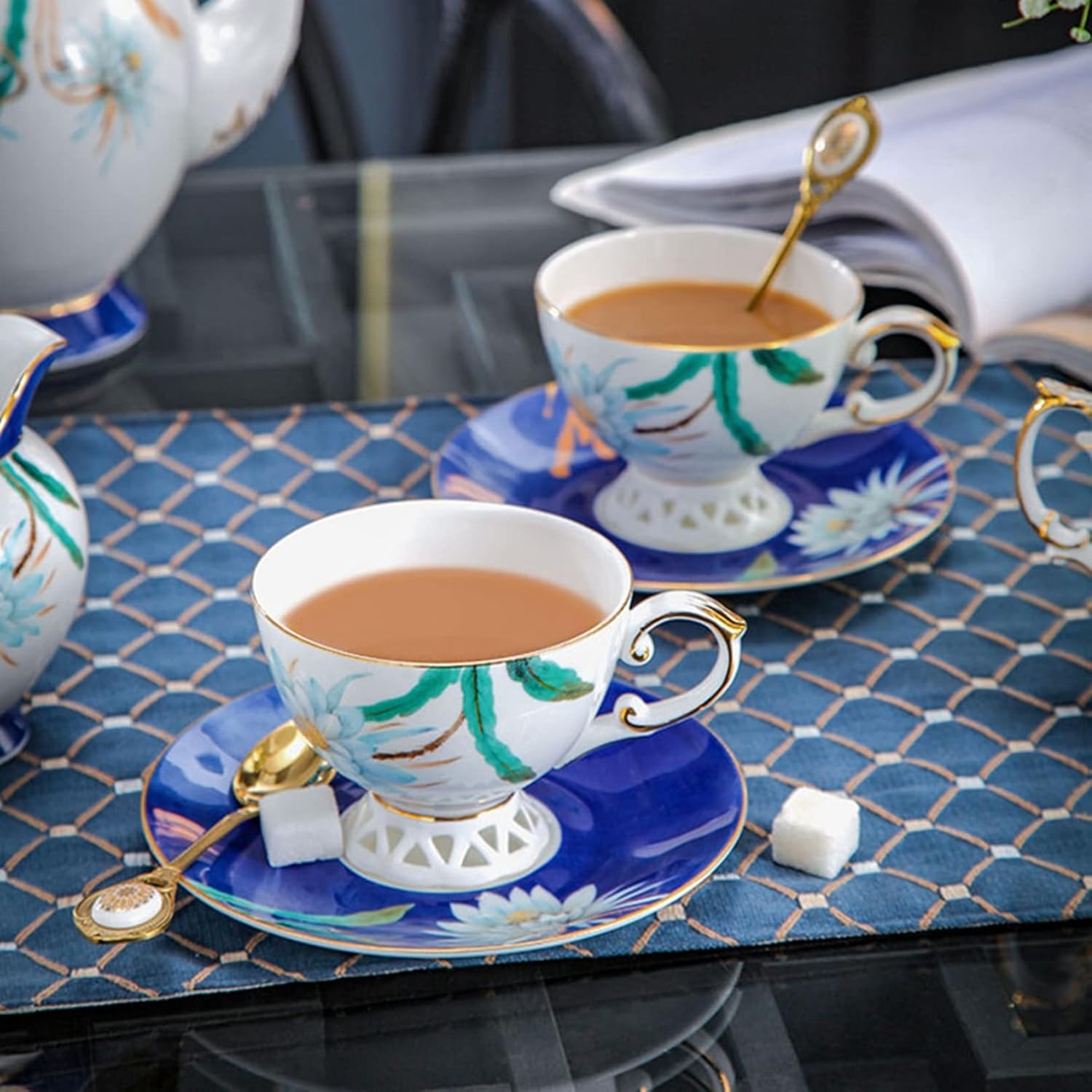 1客・2客セット カップ&ソーサー ティーカップセット ボーンチャイナ ウォーターカップ 西洋風 皿セット カフェ食器 来客用 家庭用 母へ 彼女 パーティー用 アフタヌーンティー 花茶 工芸茶 可愛