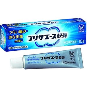 ◆プリザエース軟膏は,つらい痛み・急な出血の痔に,痛みをおさえるリドカイン,出血をおさえる塩酸テトラヒドロゾリン,炎症をおさえるヒドロコルチゾン酢酸エステルなどの有効成分が作用し,すぐれた効果を発揮します。 ◆スーッとする心地良い使用感です。 ◆内容量:10G 「効能・効果」 ・きれ痔(さけ痔)・いぼ痔の痛み・出血・はれ・かゆみの緩和及び消毒 「用法・用量」 ・適量をとり,1日1〜3回,肛門部に塗布してください。 ■ご使用前に入浴するか,ぬるま湯で患部を清潔にしてください。また,朝の場合は排便後に,夜の場合は寝る前に使用すると一層効果的です。 「成分・分量」 100g中 ヒドロコルチゾン酢酸エステル・・・0.5g 塩酸テトラヒドロゾリン・・・0.05g リドカイン・・・3g クロルフェニラミンマレイン酸塩・・・0.2g l-メントール・・・0.2g アラントイン・・・1g トコフェロール酢酸エステル・・・3g クロルヘキシジン塩酸塩・・・0.25g 添加物として流動パラフィン,ワセリンを含んでいます。 「使用上の注意」 ■してはいけないこと (守らないと現在の症状が悪化したり,副作用が起こりやすくなります) 1.次の人は使用しないでください (1)本剤又は本剤の成分,クロルヘキシジンによりアレルギー症状を起こしたことがある人。 (2)患部が化膿している人。 2.長期連用しないでください 「相談すること」 1.次の人は使用前に医師,薬剤師又は登録販売者に相談してください (1)医師の治療を受けている人。 (2)妊婦又は妊娠していると思われる人。 (3)薬などによりアレルギー症状を起こしたことがある人。 2.使用後,次の症状があらわれた場合は副作用の可能性があるので,直ちに使用を中止し,この説明書を持って医師,薬剤師又は登録販売者に相談してください [関係部位:症状] 皮膚:発疹・発赤,かゆみ,はれ その他:刺激感,化膿 まれに下記の重篤な症状が起こることがあります。 その場合は直ちに医師の診療を受けてください。 [症状の名称:症状] ショック(アナフィラキシー):使用後すぐに,皮膚のかゆみ,じんましん,声のかすれ,くしゃみ,のどのかゆみ,息苦しさ,動悸,意識の混濁等があらわれる。 3.10日間位使用しても症状がよくならない場合は使用を中止し、この説明書を持って医師,薬剤師又は登録販売者に相談してください。 「保管及び取り扱い上の注意」 (1)直射日光の当たらない湿気の少ない涼しい所に保管してください。 (2)小児の手の届かない所に保管してください。 (3)他の容器に入れ替えないでください。(誤用の原因になったり品質が変わることがあります) (4)使用期限を過ぎた製品は服用しないでください。なお、使用期限内であっても、開封後は6 ヵ月以内に服用してください。(品質保持のため) <お問い合わせ先> 大正製薬株式会社 東京都豊島区高田3丁目24番1号 電話03-3985-1800受付時間:8:30〜21:00(土,日,祝日を除く) 文責:後藤利昭 リニューアルに伴い、パッケージ・内容等予告なく変更する場合がございます。 商品廃番・メーカー欠品など諸事情によりお届けできない場合がございます。    予めご了承下さいませ。