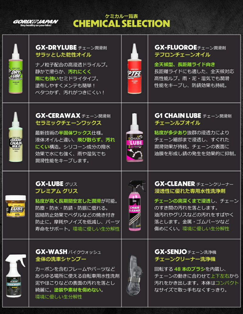 GORIX-Line ゴリックスライン チェーンルブオイル 自転車メンテナンスオイル 120ml G1 自転車用潤滑油 自転車チェーンオイル ポイント消化 抜群の浸透力によりチェーン細部まで浸透し、すぐれた潤滑効果が持続する。 自転車のロードバイクやマウンテンバイクのチェーン用潤滑剤です。 チェーンの注油だけでなく、愛車全体の可動域の注油へ使用できます。 日頃のメンテナンスに、洗車後の注油にご使用頂けます。 一滴ずつ塗布する事ができるので、無駄なく必要箇所に注油する事ができます。 内容 内容量:120ml抜群の浸透力によりチェーン細部まで浸透し、すぐれた潤滑効果が持続する。 自転車のロードバイクやマウンテンバイクのチェーン用潤滑剤です。 チェーンの注油だけでなく、愛車全体の可動域の注油へ使用できます。 日頃のメンテナンスに、洗車後の注油にご使用頂けます。 一滴ずつ塗布する事ができるので、無駄なく必要箇所に注油する事ができます。 内容 内容量:120ml
