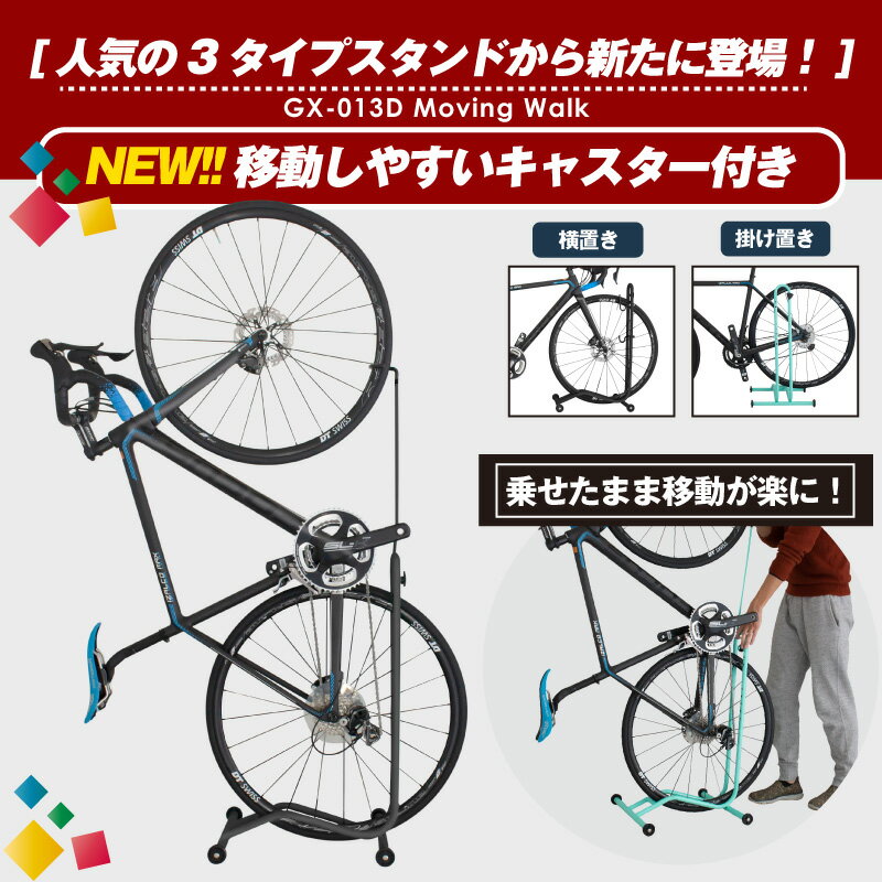 【33%OFF!スーパーセール】【送料無料】GORIX ゴリックス 自転車スタンド 縦置き 横置き 室内 1台 キャスター付き メンテナンス 3タイプ 自転車 スタンド 倒れない(GX-013D Moving Walk)おしゃれサイクルスタンド