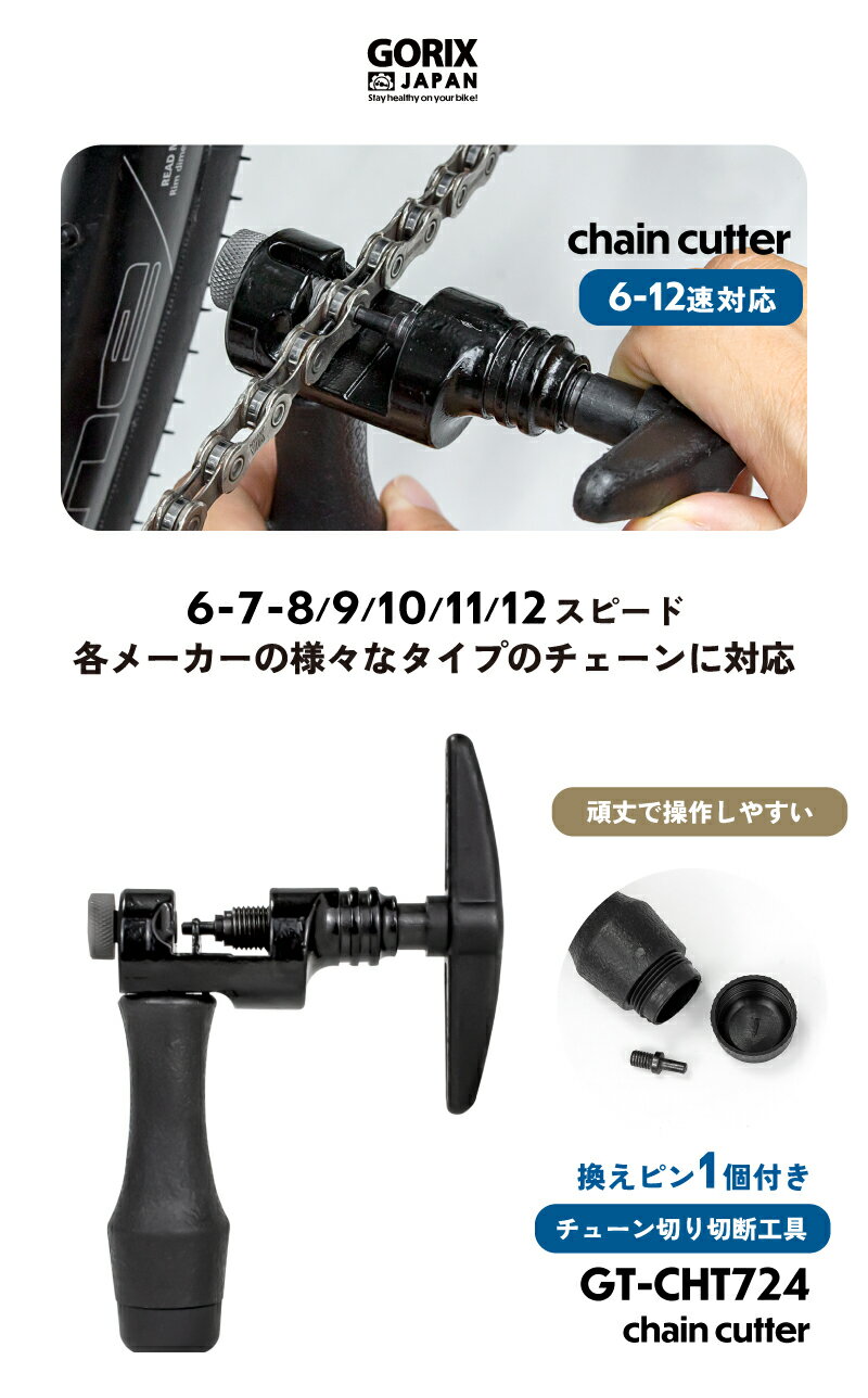 【全国送料無料】GORIX ゴリックス チェーンカッター 自転車 6-12速対応 チェーン切り 換えピン1個付き 頑丈高強度 チェーン工具 (GT-CHT724) チェーン交換 メンテナンス【ネコポス】