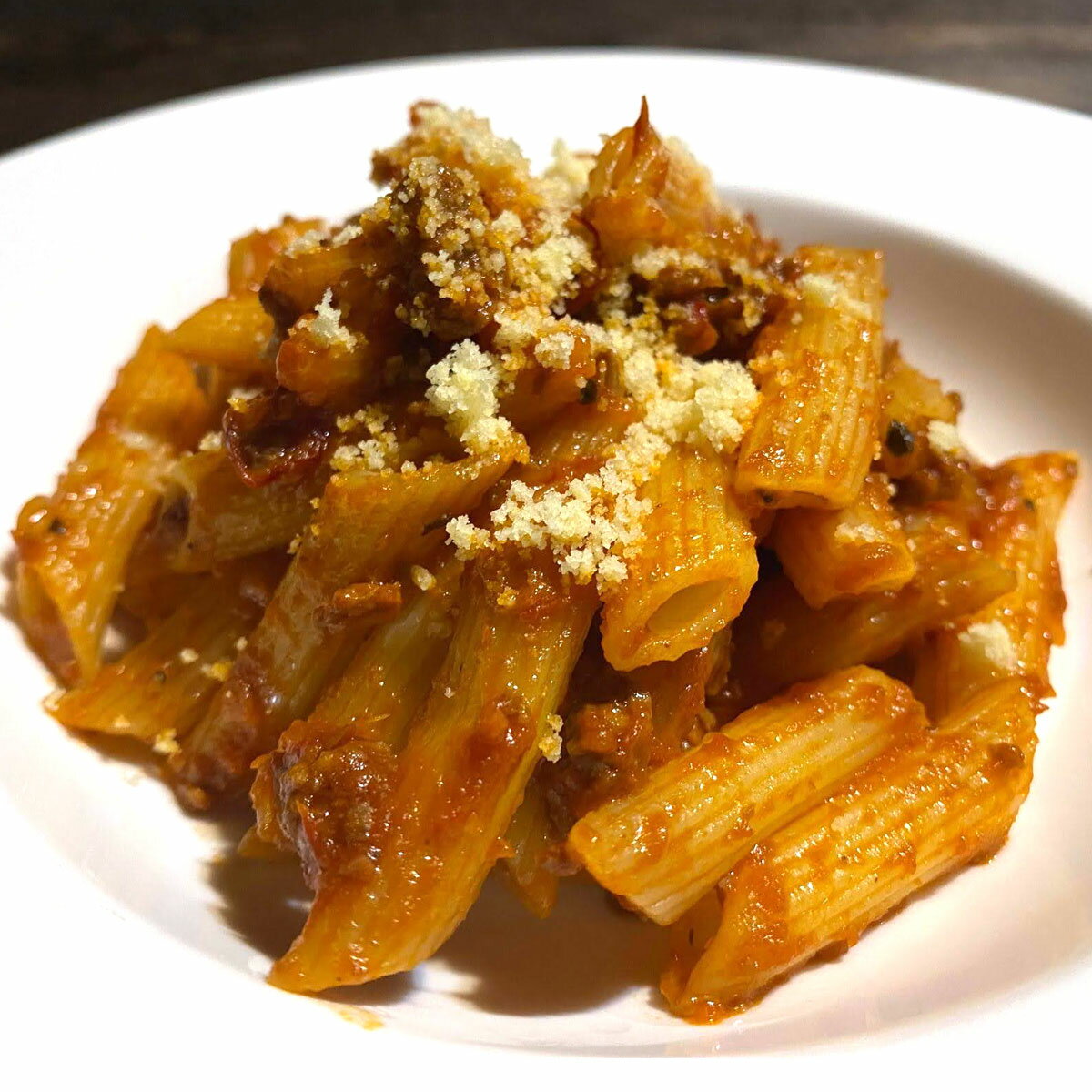 極上の食感と豊かな風味、小麦の甘みが際立つ生ペンネ!ペンネ表面の細かい溝にソースが良く絡むので、どんなソースでも良く合います。たった3分半で茹であがり、冷凍庫にストックしておけば、いつでも手軽に、もっちもち食感の本格パスタを楽しめます。 商品情報 原産国 日本 原材料 デュラム小麦のセモリナ、食塩、卵白粉 蕎麦粉、小麦粉(グルテンは小麦粉に含まれる) 規格 2人前(1人前100g×2パック) 賞味期限 製造から冷凍1年 配送温度 冷凍 【食べ方メモ】 冷凍生パスタは解凍して茹でると食感が損なわれますので、冷凍状態のまま茹でて下さい。 茹で方説明書付き。 【メモ】 解凍後の再冷凍は品質が劣化しますので、お避け下さい。「ペンネ」というパスタは、イタリア語で羽根やペンを表す「penna(ペンナ)」から由来しています。 このパスタは、断面がペンの先のような形をしており、「ペン先」という意味があります。 ペンネは、マカロニのような形をしており、表面に細かい溝があります。 この溝があるものは「penne rigate(ペンネリガッテ)」と呼ばれます。溝にソースが絡みやすく、濃厚なソースにも軽やかなソースにも合います。 パスタのこだわり 五感で楽しむ贅沢な生パスタ パスタの主原料として、世界でも屈指のプレミアムクラスのデュラム小麦を使用。全世界の小麦生産量のわずか5%程度しかない貴重なデュラム小麦の中でも、理想的な土壌や気候条件で丹念に育てられた高品質なものを厳選しています。 世界屈指のプレミアムクラスのデュラム小麦 パスタの主な原料に、世界でも有数のプレミアムクラスのデュラム小麦を使用しています。世界で生産される小麦のうち、わずか5%ほどしか生産されていない貴重なデュラム小麦の中から、理想的な土壌や気候を有する産地で大切に育てられてきた高品質のデュラム小麦を厳選しています。 小麦の大吟醸で繊細で上品な味わい プレミアムクラスのデュラム小麦から中心部分(胚乳部)のみを使用。まるでお米・お酒の大吟醸のように、外皮や胚芽を取り除いた厳選された胚乳部だけを使うことで、デュラム小麦本来の繊細で上品な味わいが楽しめます。美しい淡黄色のパスタは、小麦の大吟醸を使用している証拠です。 熱を加えない独自のセモリナ製法 デュラム小麦の挽き方や粒度にもこだわり、一般的な小麦粉や市販のデュラム小麦セモリナに比べ、さらに粒が粗いオリジナルのセモリナを使用。素材の風味を最大限に引き出すため、熱によるダメージを抑える粗挽き製法にこだわり、できるだけ熱を加えずに製麺しています。 生パスタの美味しい茹で方 【用意するもの】 ・冷凍生パスタ ・水(1人前に対して1リットル) ・塩(ひとつまみ) 【茹で方】 ・鍋にたっぷりのお湯を沸騰させます。(1人前に対して1リットルが理想です。) ・塩をひとつまみ加えます。 ・凍ったままのパスタを入れます。 ・菜箸やトングを使って優しくほぐします。 ・沸騰が続くように火加減を調節して3分半茹でます。 【ポイント!】 ・たっぷりのお湯をぐつぐつ煮えたぎるくらい沸騰させてください。(再沸騰が早くなります。) ・吹きこぼれそうになったら火加減で調節して下さい。(差し水はしないでください) ・基本の茹で時間は3分半です。 ・ソースの中で煮込む場合はちょっと硬めに上げるなどお好みで調節して下さい。 ナチュラルビーフボロネーゼのペンネのレシピ ★★★ボロネーゼを作る★★★ 【材料】 ・ナチュラルビーフ100%超粗挽きミンチ300g ・玉ねぎ 1個 ・セロリ 10cm ・ニンニク ひとかけ ・あらごしトマト又はトマトの水煮 ・赤ワイン 100cc ・オリーブオイル ・塩胡椒 ・バジル 【準備】 ・玉ねぎ、セロリ、ニンニクはみじん切りにしておく 【作り方】 ・鍋にオリーブオイルを入れ、ニンニクを入れて弱火で炒める。 ・玉ねぎとセロリを加えてしんなりするまで炒めたら牛ミンチと塩胡椒を加え、ほぐしながら強火で炒め合わせる。 ・ミンチに火が通ったら赤ワインを加えてかき混ぜながら強火でアルコールを飛ばす。 ・あらごしトマトと加えて沸騰したら弱火にし、時々かき混ぜながら1時間程煮込む。 ・最後に塩とバジルで調味して出来上がり。 ★★★ペンネ・ボロネーゼの作り方★★★ 【材料 (2人分)】 ・生ペンネ 2人前(260g) ・ボロネーゼ ・ニンニク ・オリーブオイル ・パルミジャーノ(粉チーズ) ・パセリ ・塩 【準備】 ・2リットルのお湯を沸かしておく。 ・ニンニクをみじん切りにする ・仕上げ用のパセリをみじん切りにする。 【作り方】 ・沸騰したお湯で生ペンネを3分半茹でる。 ・フライパンにオリーブオイルとにんにくのみじん切りを入れ香りが立つまで弱火で炒める。 ・ボロネーゼを加えて温める。 ・茹でたパスタを加えてあえ、塩で調味する。 ・皿に盛り、パルミジャーノとパセリを振りかけて出来上がり。 ☆冷凍パスタの茹で方のポイント!! 冷凍のまま茹でるので、沸騰した鍋に入れた際にお湯の温度が下がります。出来るだけ早