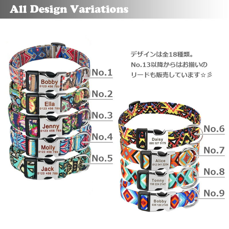 犬 首輪 名入れ S~Lサイズ【送料無料】18種のプリントデザイン首輪 ネームタグ ワンタッチバックル 軽量 軽い 布製 樹脂製 迷子札 名前入り 名入り かわいい おしゃれ 小型犬 中型犬 大型犬 名札 電話番号入り