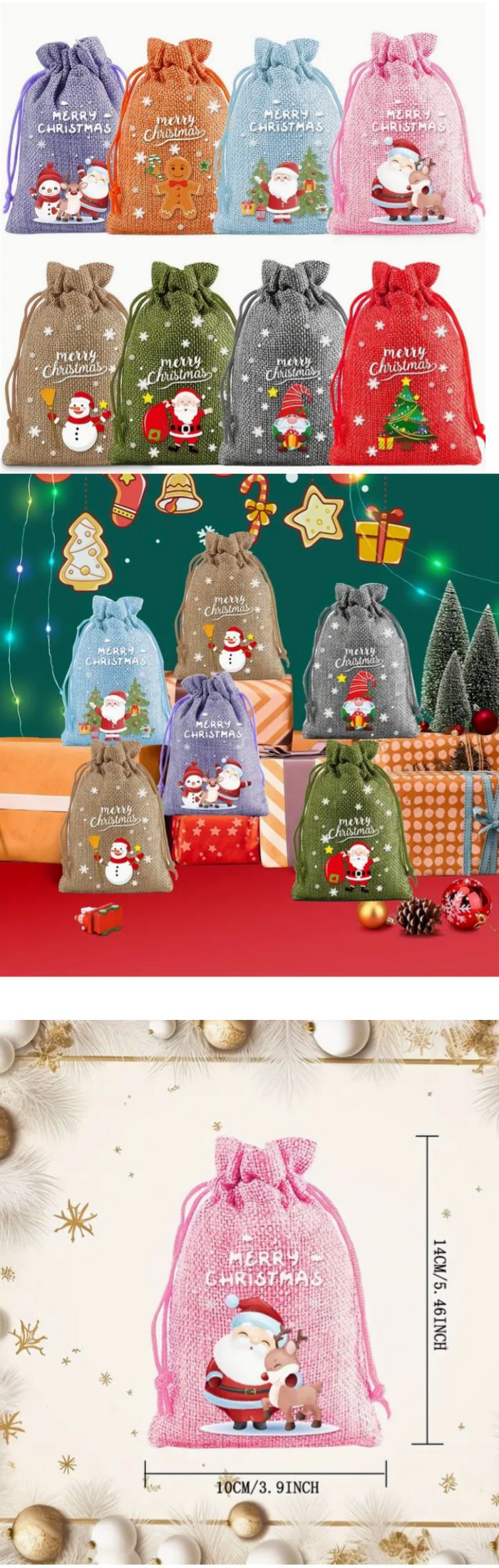 1枚 麻布ギフトバッグ巾着ギフトバッグ クリスマス雪だるまサンタクロース クリスマス飾り 祝祭のリネンポーチ ホリデープレゼント ウェディングファボー DIYクラフトに最適 パーティー用品 クリスマスデコレーションにぴったり