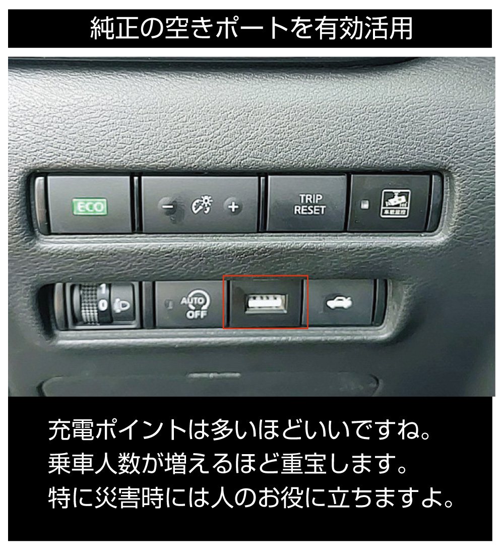 商品詳細 特徴 ・日産車用の空きポートに取付できる増設用QC3.0のUSBポートです。 ・後付感を減らし、まるで純正かのようにスイッチを増設できます。 ・ヒューズから電源が取れる配線コネクターセットなので取付簡単! ・夜間でも充電口が確認できるようLEDが発光するのでワンポイントイルミネーションとしてもGood! 品番 CZ-NSUSB 商品名 ニッサン車用 QC3.0 USBポート 適合車種 デイズ B40系 / ルークス B45A系 / ekワゴン ekクロス B30系 / リーフ ZE1 / キックス サイズ W23.9 × H18 × D47.2mm 重量(約) 41g(配線含む) セット内容 ポート本体×1 専用コネクター配線×1 注意事項 ※この商品はDIYを前提としたカスタムパーツです。お取り付けに関するサポートは行っておりません。取付に自信の無い方はプロショップでの依頼をオススメいたします。 ※どのような場合でも、取付工賃や破損部品などの保証は行っておりません。予めご了承ください。 ※適合車種欄に記載されている車両でも、年式・グレード・オプション等の状況により適合しない場合がございます。予めご了承ください。 ※必ず取付を行う場所のサイズをご確認ください。 ※画像はご覧になっているパソコン・モニター等により実際の商品と多少色味が異なる場合がございます。色味が違う等の理由での返品・交換はお受けできませんので予め、ご了承下さい。 【メール便ご希望の場合は必ずご確認ください】 ■ご注文前にこちらからメール便の注意事項をよくご確認ください。 ■メール便(定形郵便)商品と同時に注文いただいた場合、配送方法にシステム上「宅配便」と 表示されますが、ネコポスにて発送されます。商品詳細 特徴 ・日産車用の空きポートに取付できる増設用QC3.0のUSBポートです。 ・後付感を減らし、まるで純正かのようにスイッチを増設できます。 ・ヒューズから電源が取れる配線コネクターセットなので取付簡単! ・夜間でも充電口が確認できるようLEDが発光するのでワンポイントイルミネーションとしてもGood! 品番 CZ-NSUSB 商品名 ニッサン車用 QC3.0 USBポート 適合車種 デイズ B40系 / ルークス B45A系 / ekワゴン ekクロス B30系 / リーフ ZE1 / キックス サイズ W23.9 × H18 × D47.2mm 重量(約) 41g(配線含む) セット内容 ポート本体×1 専用コネクター配線×1 注意事項 ※この商品はDIYを前提としたカスタムパーツです。お取り付けに関するサポートは行っておりません。取付に自信の無い方はプロショップでの依頼をオススメいたします。 ※どのような場合でも、取付工賃や破損部品などの保証は行っておりません。予めご了承ください。 ※適合車種欄に記載されている車両でも、年式・グレード・オプション等の状況により適合しない場合がございます。予めご了承ください。 ※必ず取付を行う場所のサイズをご確認ください。 ※画像はご覧になっているパソコン・モニター等により実際の商品と多少色味が異なる場合がございます。色味が違う等の理由での返品・交換はお受けできませんので予め、ご了承下さい。