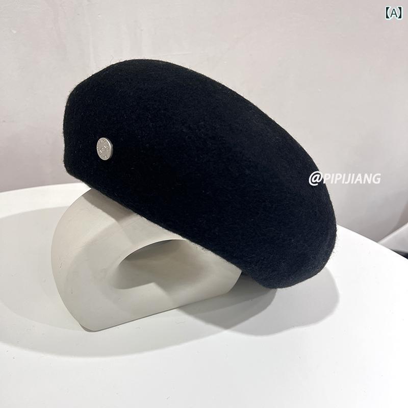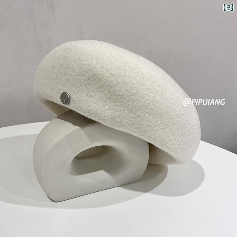 ベレー帽 レディース 帽子 おしゃれ シンプル ウール 秋冬 伸縮性 韓国 ファッション ホワイト ブルー イエロー