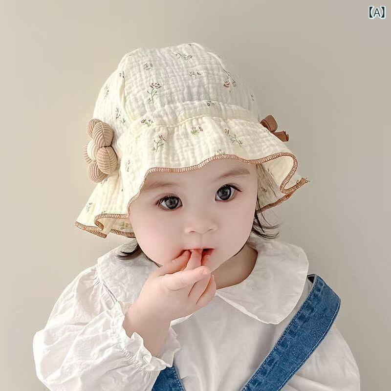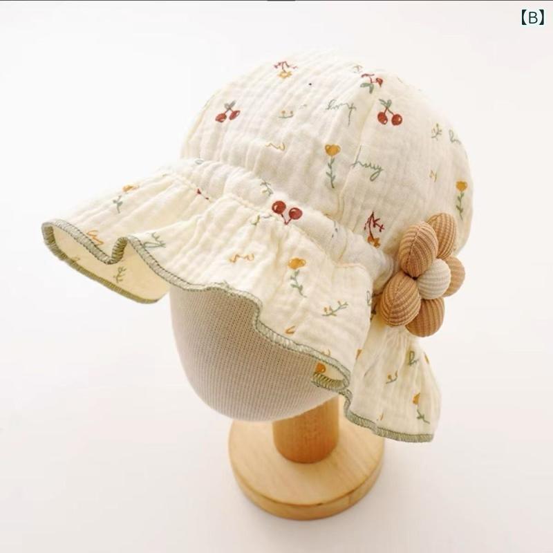 ベビー バケットハット 女の子 赤ちゃん 夏用 コットン 通気性 UVカット 日よけ 花柄 小花柄 小熊柄 チェリー柄 蒸れない 紫外線対策 かわいい