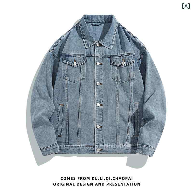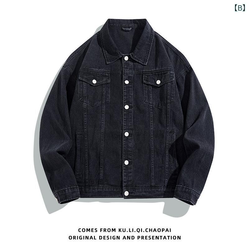 デニムジャケット メンズ フード付き オーバーサイズ 長袖 多ポケット 防風 無地 カジュアル 春秋 綿混 万能 ストリートアウター 日系デザイン 普段使い 通勤 通学 ブルー ブラック