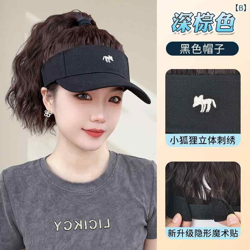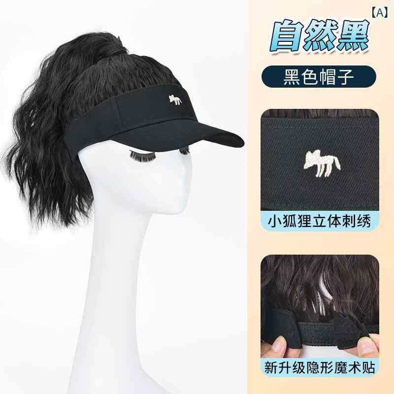 帽子ウィッグ レディース ショート丈 コーンパーマ風 耐熱ファイバー ハイポニーテール対応 サンバイザーキャップ 一体型 小顔効果 自然な仕上がり 韓国風 秋冬ファッション