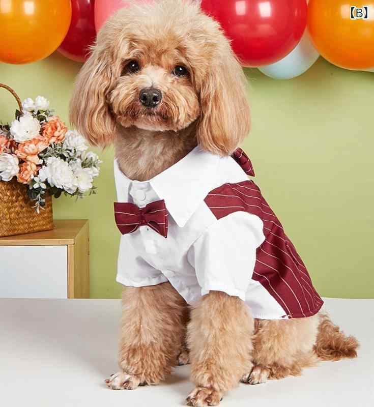 犬服 ペット フォーマルウェア コットン 薄手 半袖 ネクタイシャツ スーツ タキシード お出かけ 結婚式 パーティ 記念撮影 ビションフリーゼ トイプードル 小型犬 中型犬 青 赤 黒