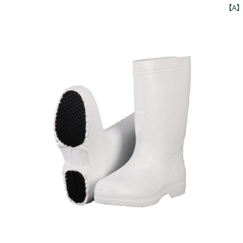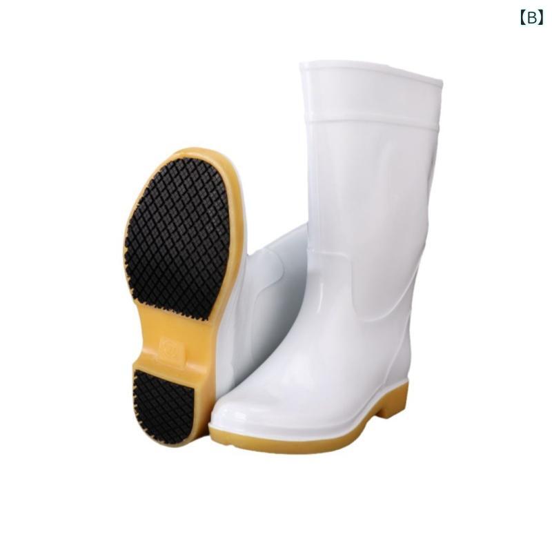 長靴 メンズ 男性用 レインブーツ ゴム長靴 EVAソール PVC製 超強力 滑り止め ノンスリップ 耐摩耗 丈夫 防水 快適 クッション性 通気性 ムレ軽減 食品工場用 厨房作業用 飲食店 作業靴 ミドルカット