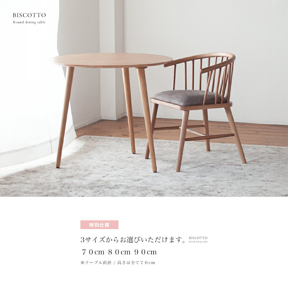 テーブルサイズ 直径70cm・80cm・90cm テーブル高 70cm 素材 表面材:オーク突板材 その他:ラバーウッド材 塗 装:つや消しクリア仕上 F☆☆☆☆ウレタン塗装 納期 受注生産品 ご注文から約30日前後で出荷可能です。 繁忙期(11月~3月)は45日~90日 送料 無料 北海道、沖縄、離島は送料が発生しますため別途お見積りいたします。 配送 宅急便 玄関先にて梱包材のままお引き渡しです。 注意事項 ・素材は天然木のため、節、木目、色等、商品事に違いがございます。 ・節、木目、色等のご指定は出来ません。 ・イメージ、サイズ感の違い等、お客様都合による返品は不可です。 ・製作開始後の仕様変更、キャンセルは不可です。 ・高さは製作上ミリ単位の誤差が生じます(1cm以内)