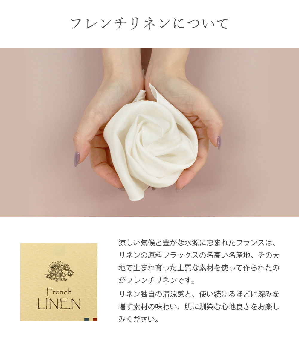 〈2タイプから選べる〉柔らかくて上質な肌触りのフレンチリネンポケットチーフ ─ FRENCH LINEN POCKET CHIEF ─ フレンチリネンとは、フランス北部で栽培された亜麻(フラックス)から作られた麻のことで、 リネン特有のさらりとした清涼感と柔らかくてしなやかな肌触りが特徴です。 本チーフは、フレンチリネンのナチュラルで上質な風合いをいかして作りました。 フォーマルシーンからビジネス、普段使いまで幅広くお使いいただけます。 チーフはご自身で折りたい方向けの通常タイプ(正方形型)と ポケットに入れるだけの台紙一体型タイプからお選びいただけます。 フレンチリネンについて 涼しい気候と豊かな水源に恵まれたフランスは、リネンの原料フラックスの名高い名産地。 その大地で生まれ育った上質な素材を使って作られたのがフレンチリネンです。 リネン独自の清涼感と、使い続けるほどに深みを増す素材の味わい、 肌に馴染む心地良さをお楽しみください。 VARIATIONS │ 正方形型│ │ 台紙一体型(フラワー) │ DETAIL&SPEC 商品名 フレンチリネンポケットチーフ サイズ(約) 【正方形型】32cm×32cm ※生地の裁断・縫製箇所において±1cm程度の誤差があります。 ※チーフは生地の特性と裁断都合により正方形に多少の歪みが出ます。こちらは製品上の仕様となりますことをご了承ください。 【台紙一体型(フラワー)】 台紙のサイズ:縦9cm×横7cm チーフ部分:幅8cm×高さ9cm(±5mm) ※生地の裁断・縫製箇所において各±5mm程度の誤差があります。 ※台紙一体型チーフはチーフを台紙に縫い付けている為、取り外し不可となります。 素 材 リネン(麻) 生産国 日本 ご注意 本商品は天然素材を使用している為、多少のネップ(繊維のかたまり)、糸フシ、しわ等の特徴が見られますが、こちらは素材ならではの風合いとなりますことをご了承ください。 商品の色味について 屋外撮影の商品画像や、お使いのパソコンやスマートフォンのディスプレイの明るさ等によって実際の色や見え方が多少異なる場合がございます。予めご了承ください。 SHIPPING&GIFT WRAPPING