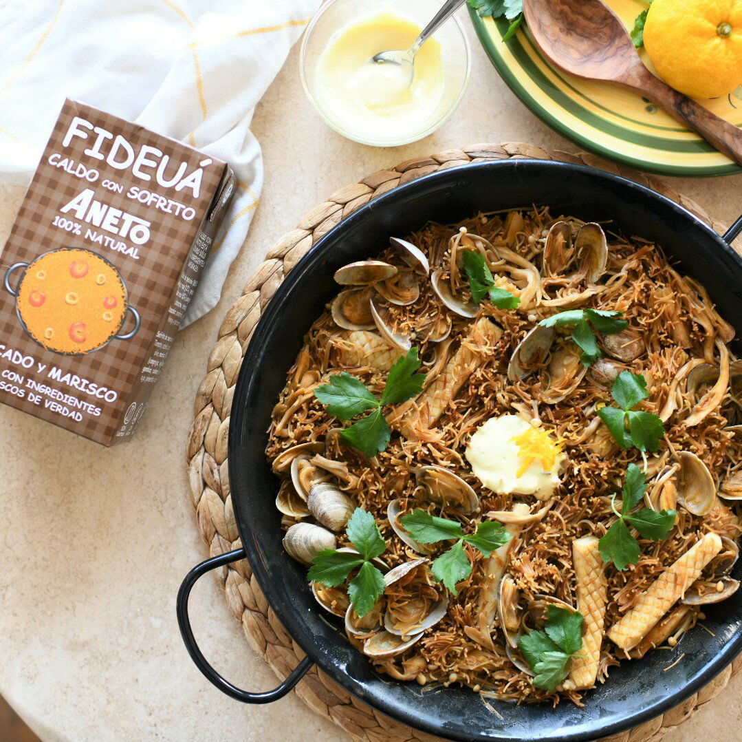 フィデウア(パスタパエリア)以外に、スープやサラダに入れてもオススメです。 GALLO『フィデオスNo.0(細麺・ショートパスタ)450g』 本場スペインのレストランでも使われており、時間が経ってものびずらく、しっかりと油で炒めてから炊けばパリパリっとした食感のフィデウア(パスタパエリア)に!スペインのパスタメーカーが作るショートパスタで、その品質は間違いなし! フィデオスとはスペイン語でショートパスタを意味します。パスタで作るパエリア「フィデウア(Fideua)」は、主にカタルーニャ沿岸の地域で人気の料理です。 ANETOフィデウアのカルド(だし)や、 ANETOパエリアスープとの相性は抜群!是非合わせてお試しください! 【サイズ】 太さ約0.9mm・長さ約2cm(当社計測) 【茹で時間】 2〜4分。お好みで調整下さいませ。 【おすすめレシピ】 アサリとイカのフィデウア(パスタパエリア)柚子香るアリオリソース 芳ばしく炒めた細麺のショートパスタで炊くフィデウア(パスタパエリア)。三つ葉や柚子で爽やかな和のアクセントを加えることで、甲殻類や魚介のうま味たっぷりのANETO「フィデウアのカルド」(他、魚介パエリアのカルドやイカ墨のカルドもおすすめです)の濃厚な味わいが引き立ちます。 【材料】3人分(28cmパエリア鍋使用) アサリ(砂抜き済み):220g イカ(切り身):150g えのき・舞茸:各1/2株 オリーブオイル:大さじ1 【A】ANETO「フィデウアのカルド」:300ml 【A】塩:少々 GALLO『フィデオス no.0(ショートパスタ 細麺)』 :150g アリオリソース:(マヨネーズ:大さじ1、EXVオリーブオイル:大さじ1/2、牛乳:大さじ1/2、にんにく(すりおろし):小さじ1/2、塩:少々、砂糖:少々を混ぜ合わせる) 三つ葉:適量 柚子皮(千切り):適量 【作り方】 1. えのき、舞茸は石づきを切り、食べやすい大きさに切る。柚子皮は千切りにする。 2. パエリア鍋を温めてオリーブオイルをひき、中火でGALLO『フィデオス no.0(ショートパスタ 細麺)』 がきつね色になるまで炒める。一旦取り出す。 3. パエリア鍋に【A】を入れて沸騰させる。アサリとイカを加え、アサリの口が開くまで中火で煮る。 4. 炒めたフィデオスを加え、平らにならす。中火〜強火で3〜4分、水分がほぼ無くなるまで加熱する。 5.アリオリソース、三つ葉、柚子皮を添えて完成。 商品詳細 名称 フィデオス(ショートパスタ) 原材料名 デュラム小麦のセモリナ 内容量 450g 賞味期限 枠外に記載 保存方法 乾燥した涼しいところで保存して下さい。 原産地 スペイン 輸入・販売者 有限会社グランジャポン 住所 神奈川県横浜市青葉区あざみ野南3-17-15 電話番号:045-910-0108 特徴 調理方法:標準ゆで時間2〜4分